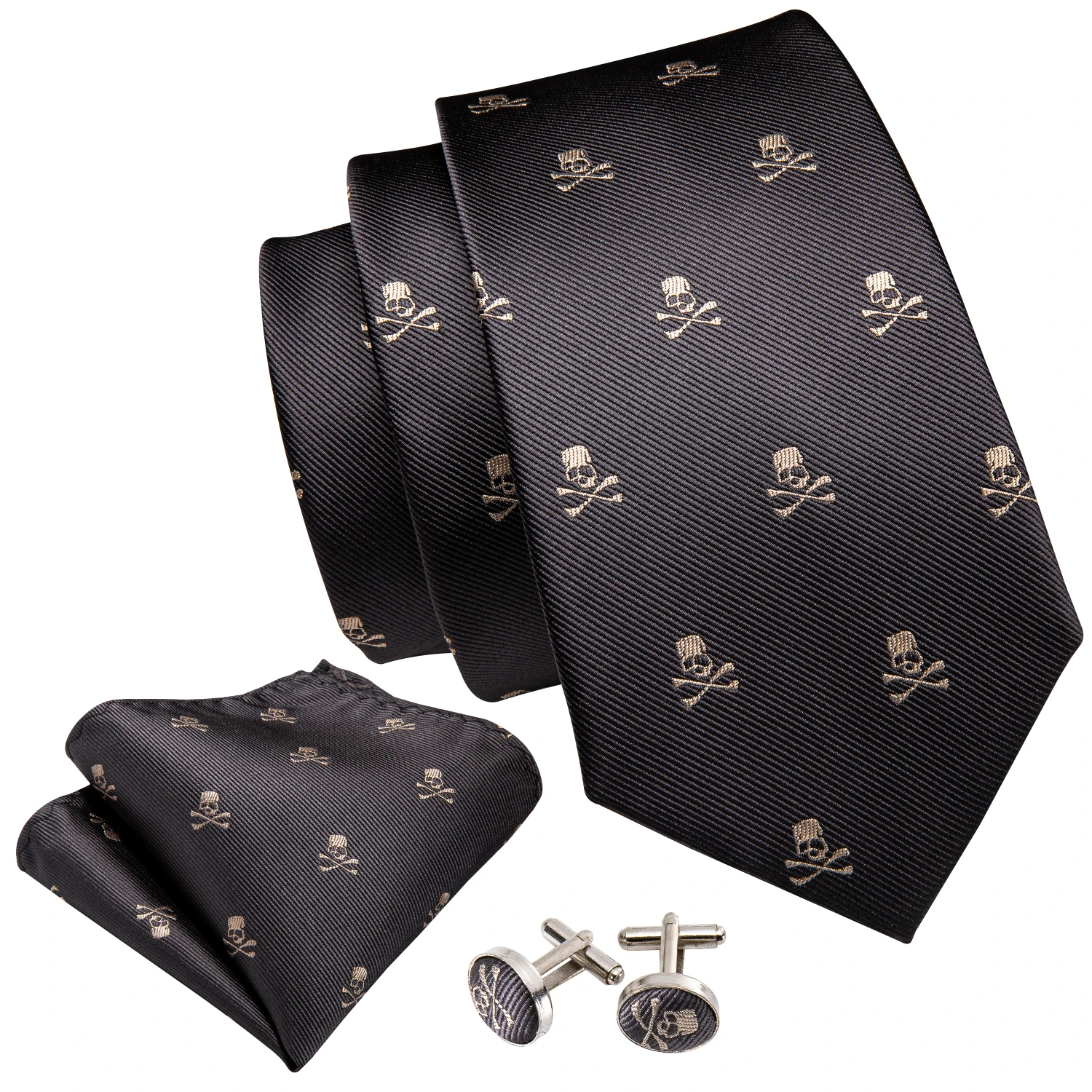 Мужской галстук с черепом, запонки для носовых платков, Вечерние шелковые галстуки для мужчин, деловой подарок Barry.Wang