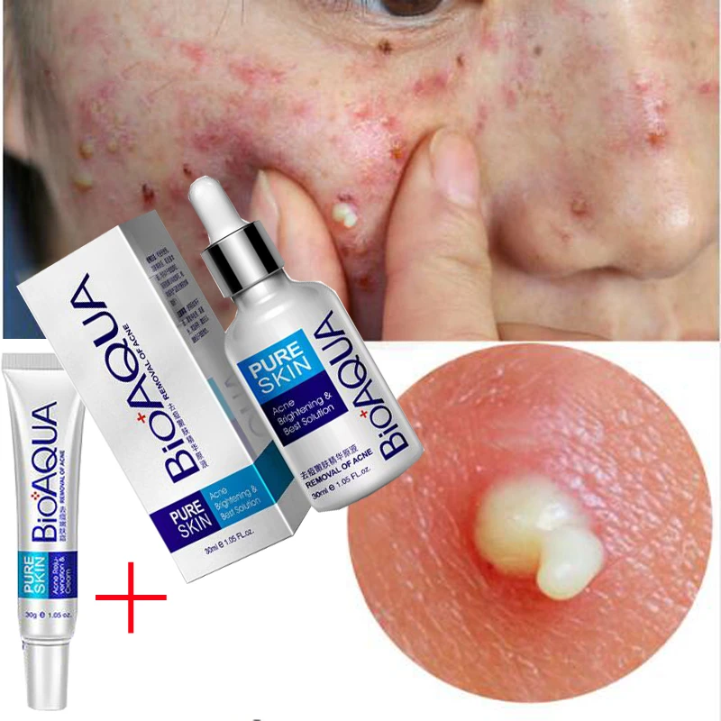 BIOAQUA травяной крем для лица против акне + крем для удаления шрамов от акне, набор жидкой сыворотки для жирной кожи, прыщей, увлажняющий гель для ухода за лицом