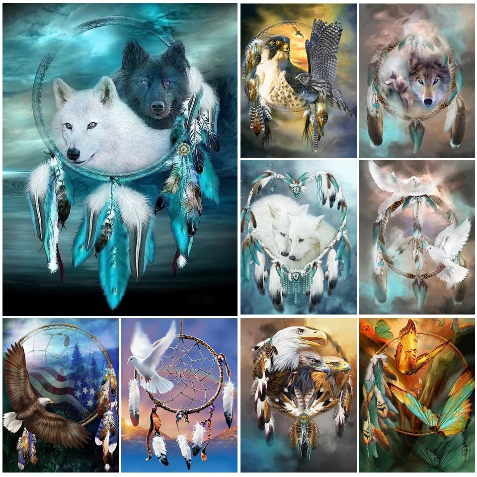 Алмазная живопись "сделай сам", квадратный Ловец снов, волк, вышивка крестом, алмазная вышивка, животное, мозаика, декор для Стразы