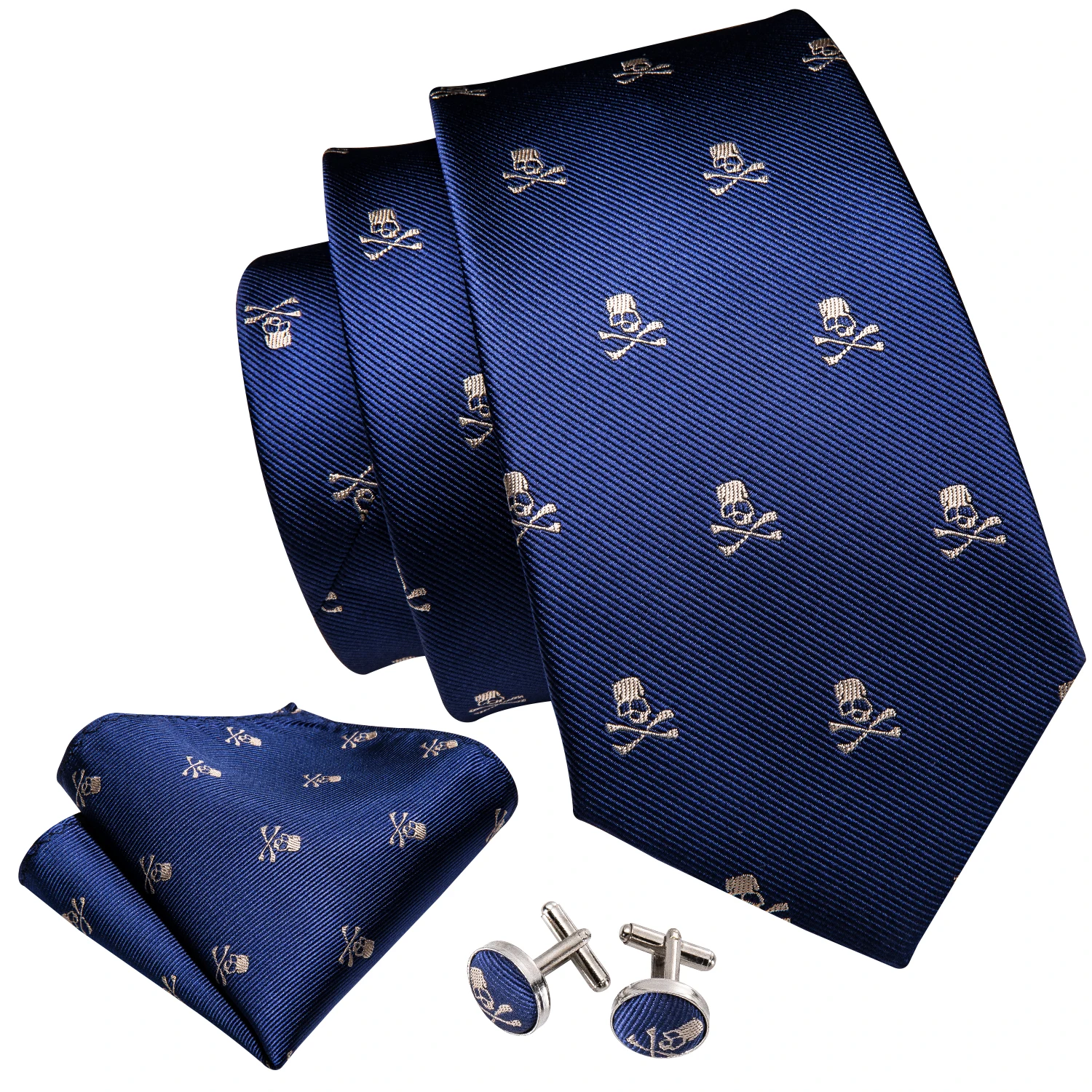 Темно-синий череп Модный мужской галстук Галстук носовой платок зап...