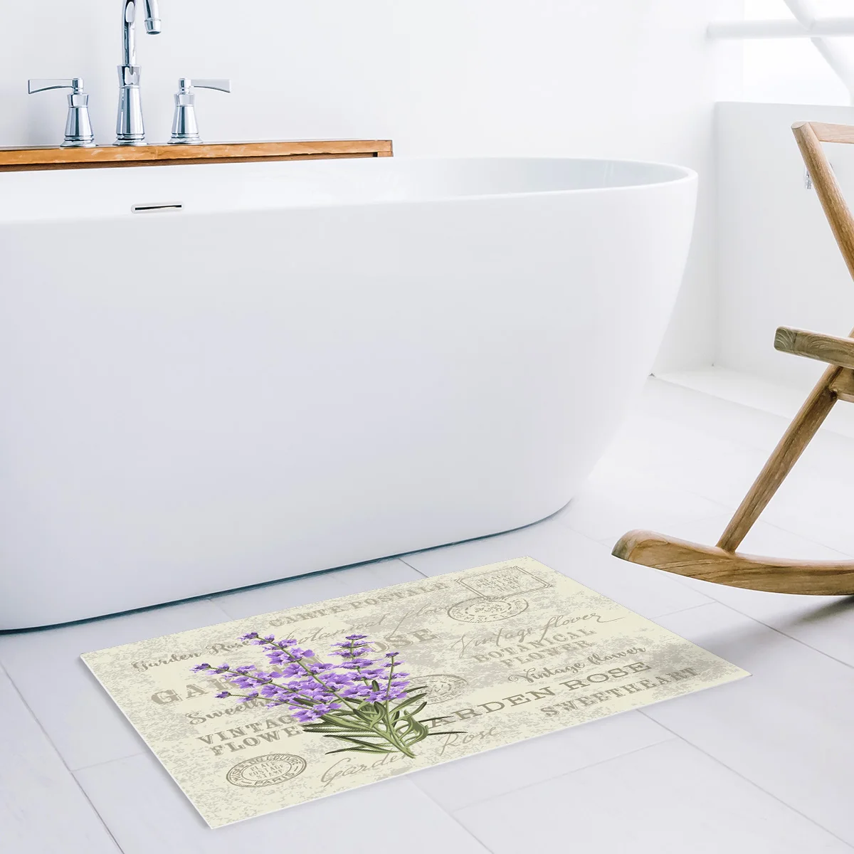 Нескользящий коврик для ванной комнаты, фиолетовый, лавандовый, с цветами, растениями, английские слова, аксессуары для ванной комнаты, гостиной, кухни