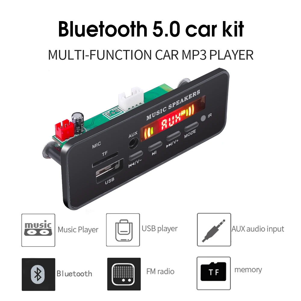 Беспроводной MP3 WMA декодер, плата, пульт дистанционного управления, плеер 12 В, Bluetooth-Совместимость 5,0 USB FM AUX TF SD карта, модуль автомобильного радио, динамик