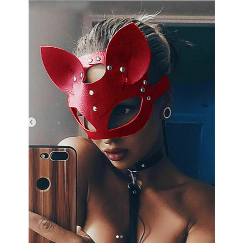 Сексуальная маска кошки для косплея, черный, красный, женский костюм для вечерние, ПВХ бондажные маски для взрослых, специальные кошачьи уши, регулируемые дизайнерские маски