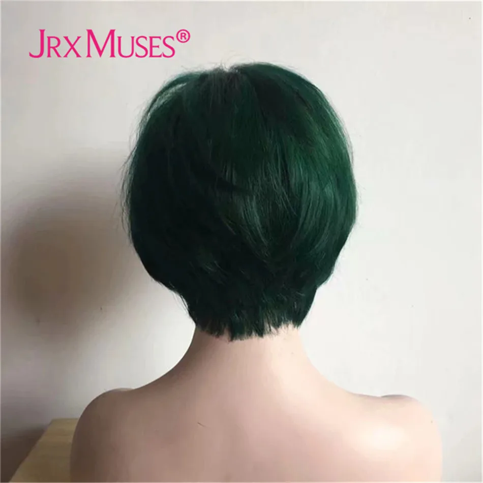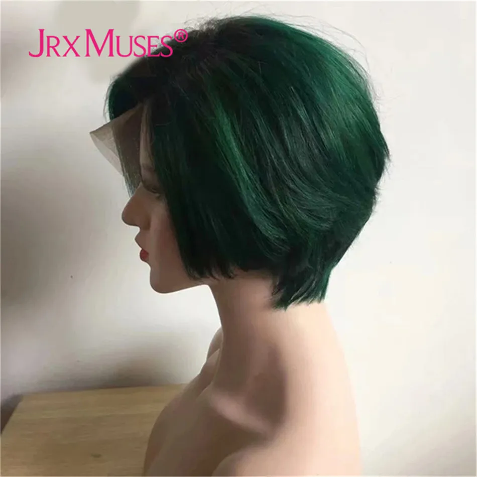 Темно-зеленые высокой плотности короткие кружевные человеческие волосы парики для женщин бразильский парик Реми человеческие волосы вырезанные волнистые парики для черных женщин