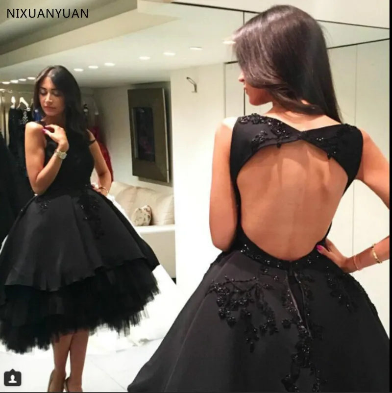 Женское коктейльное платье, черное коктейльное платье с открытой спиной, 2021, украшенное бисером, вечернее платье с аппликацией
