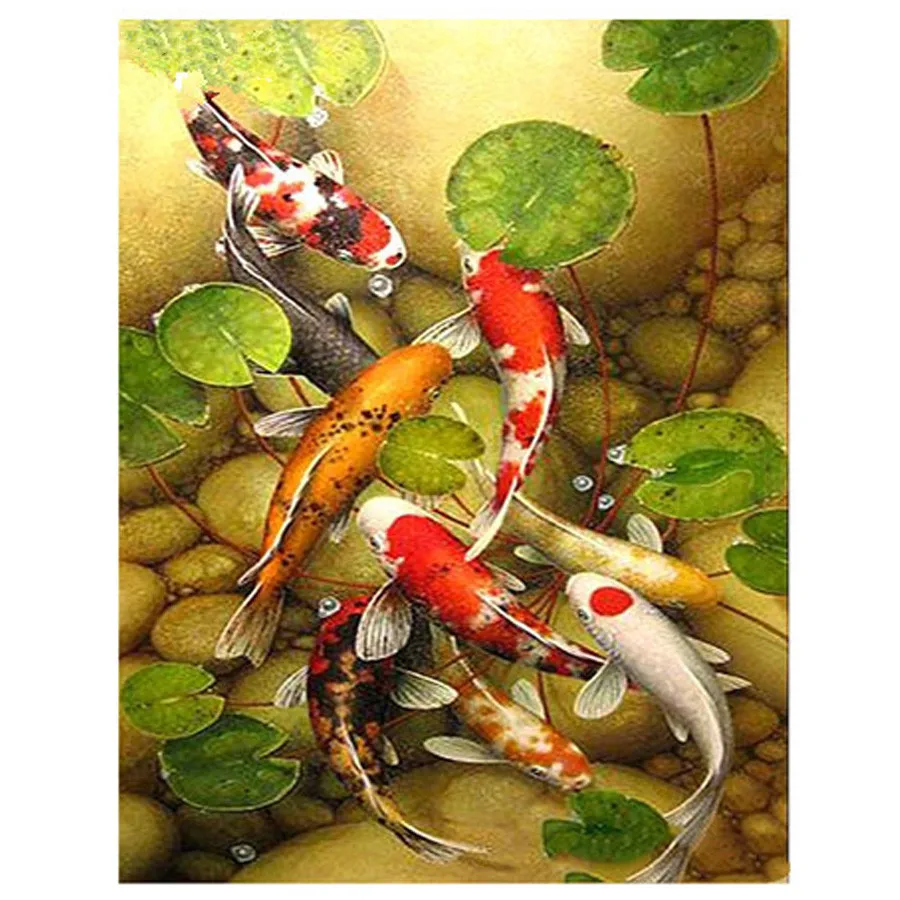 Алмазная живопись с узором Koi, листья лотоса, золотая рыбка, благословение, рыбки, сделай сам, 3D Алмазная вышивка, вышивка крестиком, мозаика, картина, декор AZ512