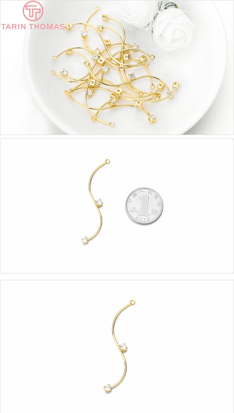 (2711)6 шт. 48 мм 52 мм циркон 4 мм 24 к золотого цвета Латунь S-образная форма подвески высокого качества Diy Ювелирная фурнитура Аксессуары