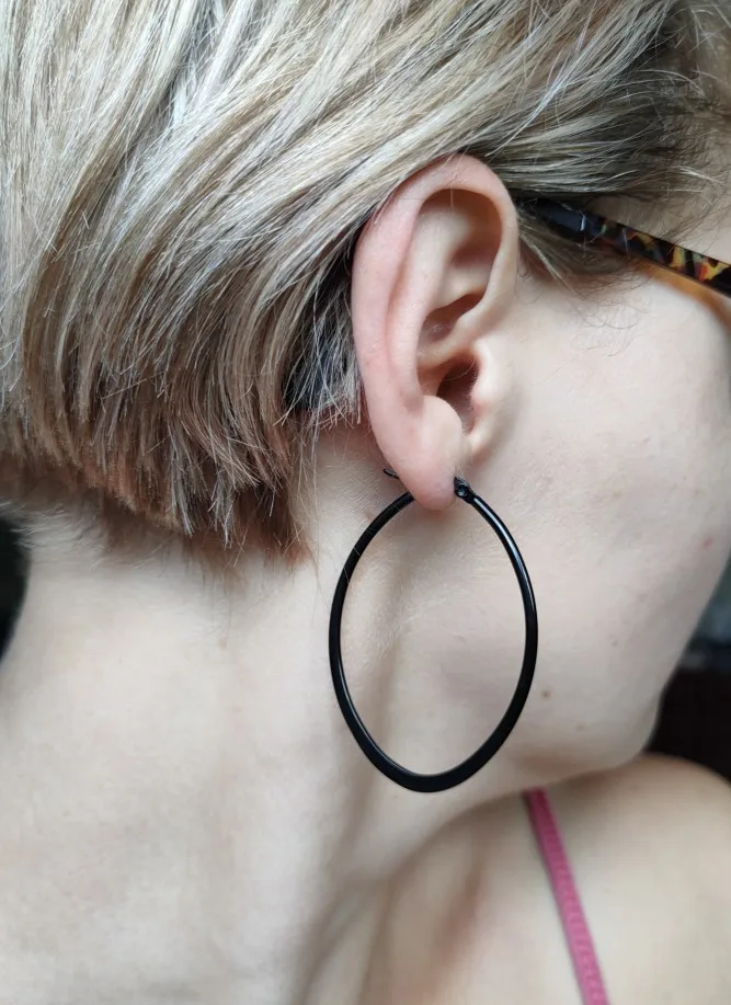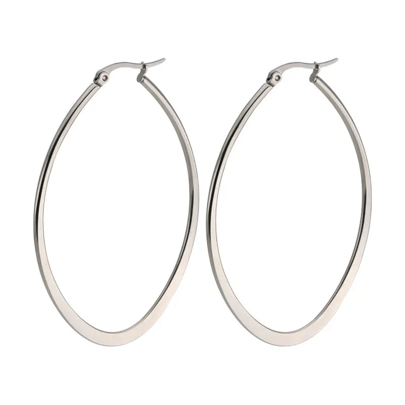 Серьги-кольца из нержавеющей стали, трендовые, Овальные, Приплюснутые, Преувеличенные, серебряныечерныеЗолотые, свадебные серьги, ювелирные изделия для женщин E18374