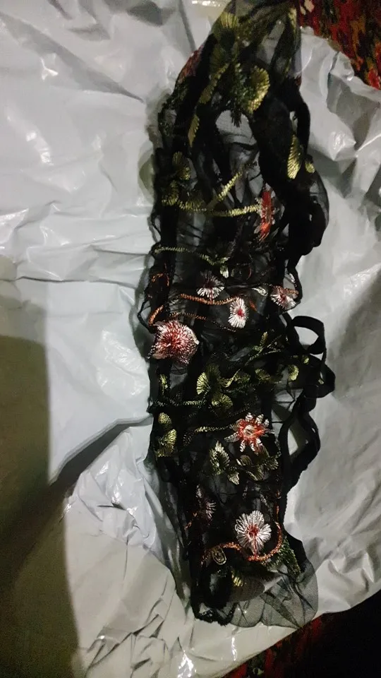 Все отлично, ткань приятная, единственное мало цветов на сеточке, не как на фото. Но это зависит от участка ткани для пошива..