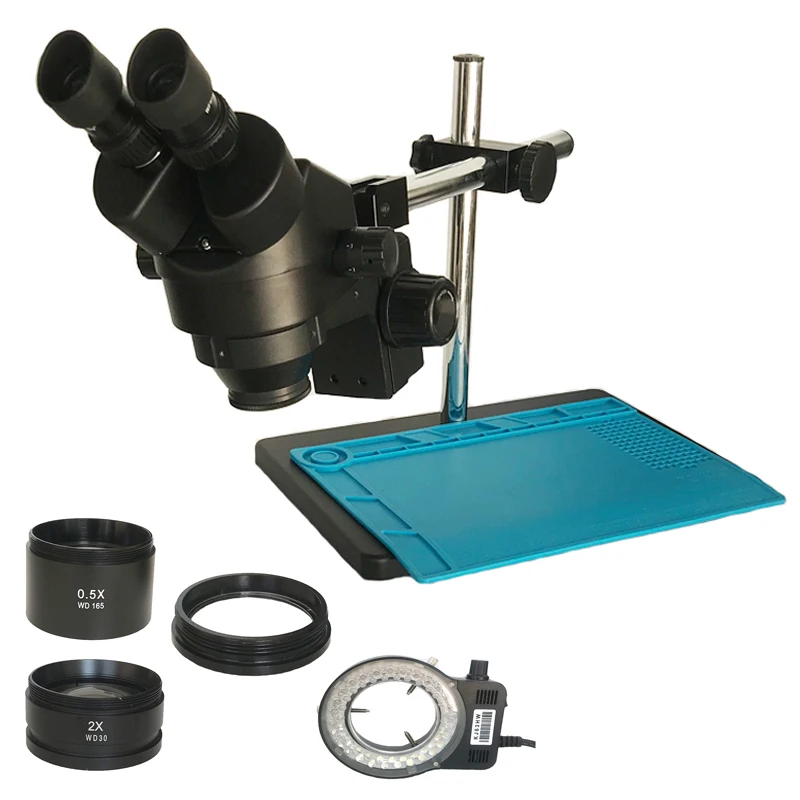 Монокулярный стереомикроскоп 3,5x-90X, Индустриальный микроскоп для ремонта печатных плат и сотовых телефонов, увеличительное стекло, линза с увеличением 0,5x и 2,0x, инструменты для коврика