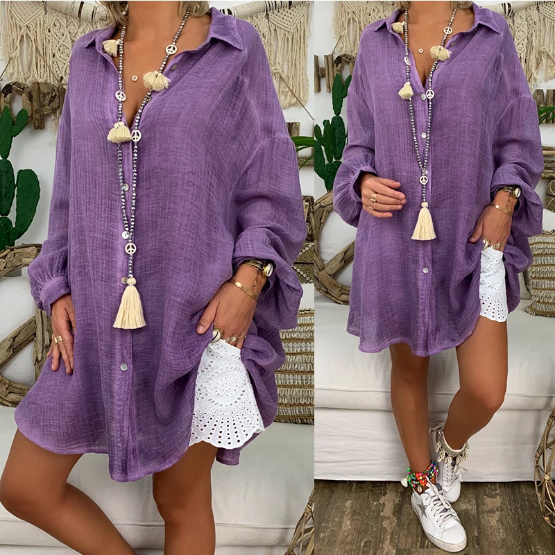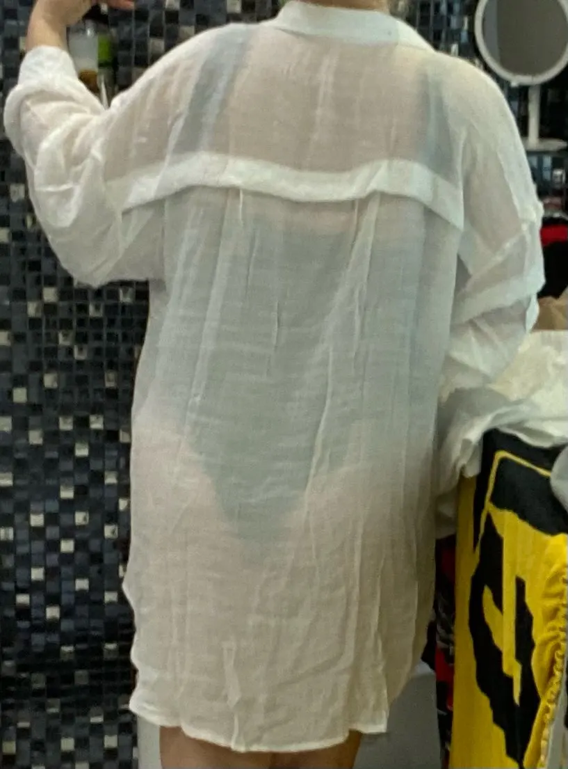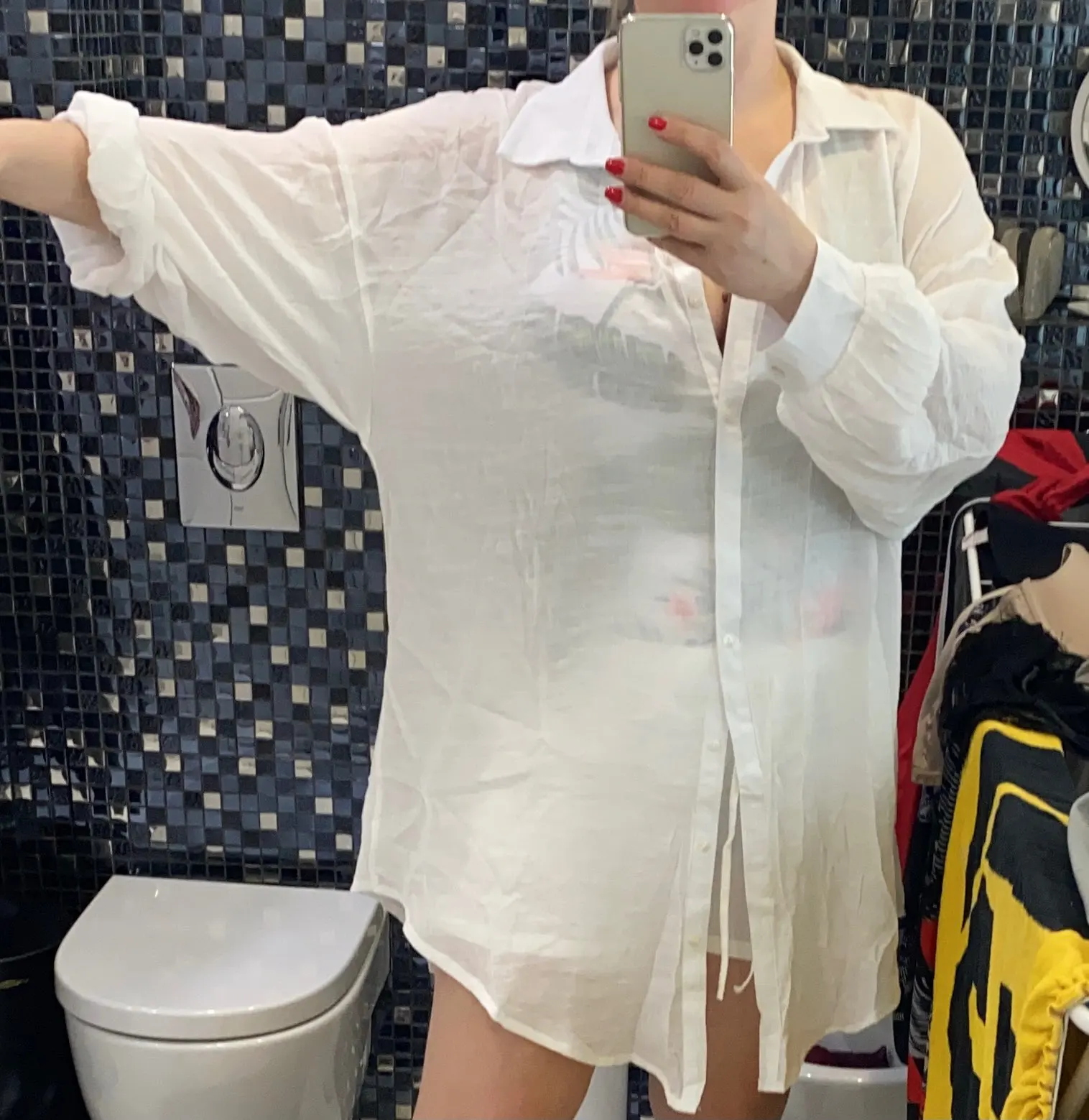 Заказ шёл около месяца, отслеживался. Рубашка свободная оверсайз, на рост 170 см до середины колена. Можно носить как тунику на купальник или сверху на футболку (майку) т.к. сильно просвечивается, ткань тонкая и легкая, похожа на марлевку, для лета отлично.