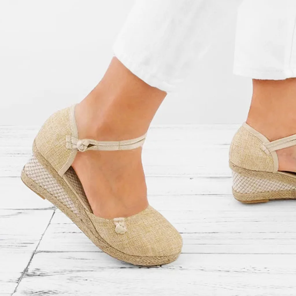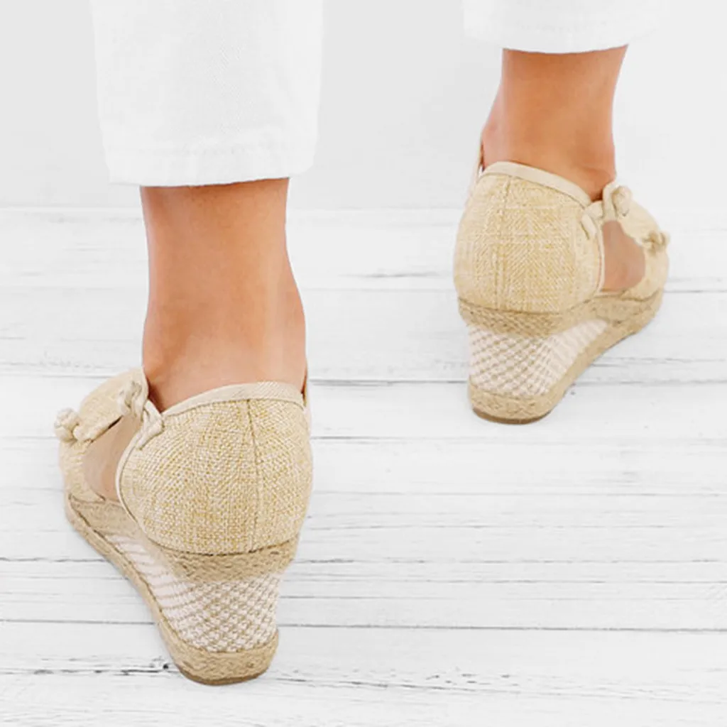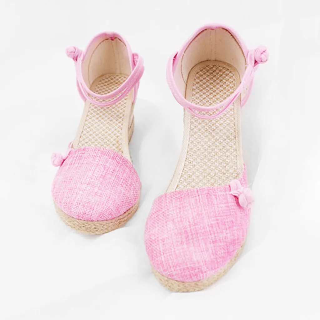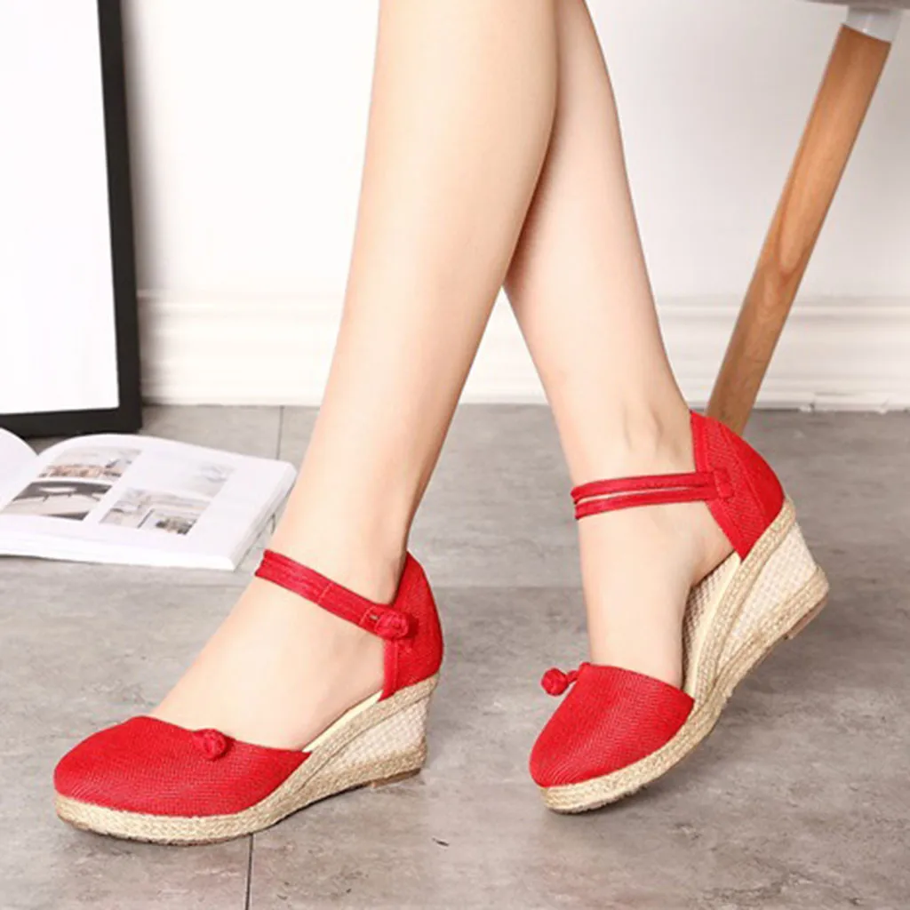 Сандалии женские из текстиля и пеньковой веревки, повседневные босоножки в стиле ретро, на танкетке, с круглым носком, элегантные босоножки с закрытым носком