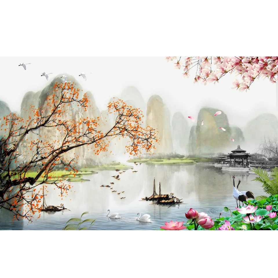 DIY 5D алмазная живопись лодка, лотос журавль, пейзаж Живопись Полный Круглый/квадратный Вышивка крестом Стразы мозаика домашний декор