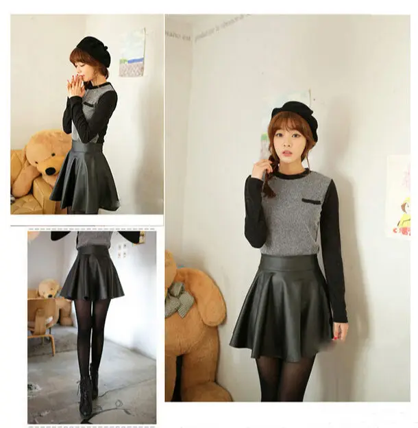 Шикарные женские юбки из искусственной кожи, милая эластичная юбка ...