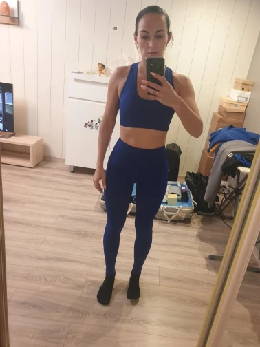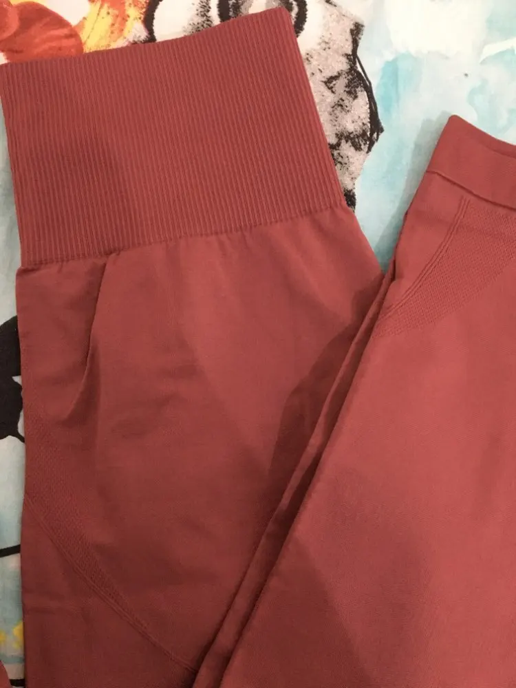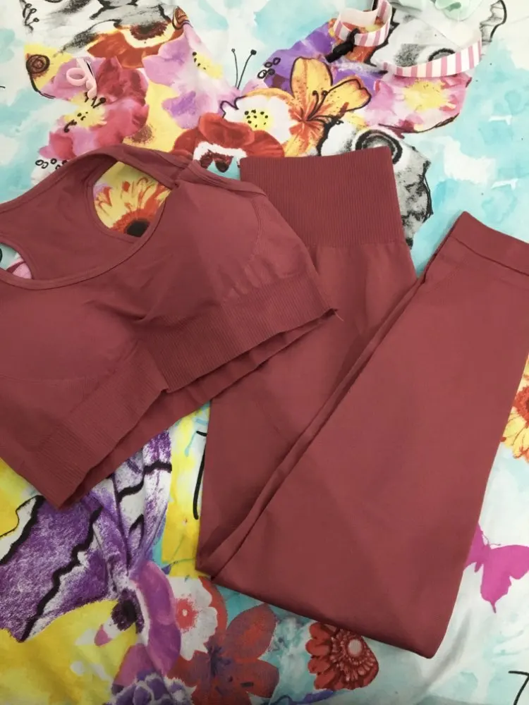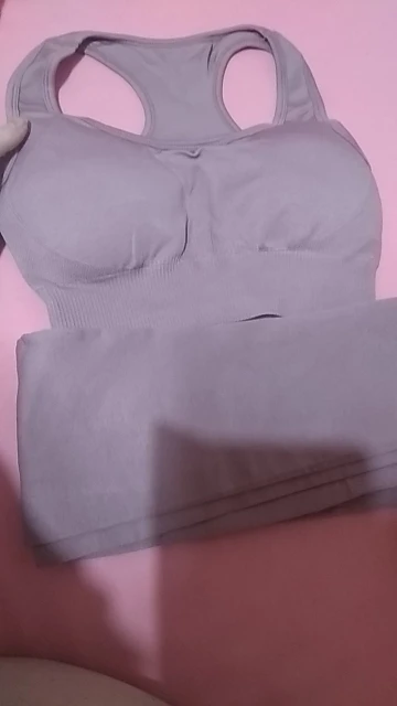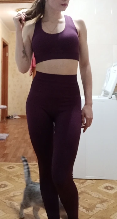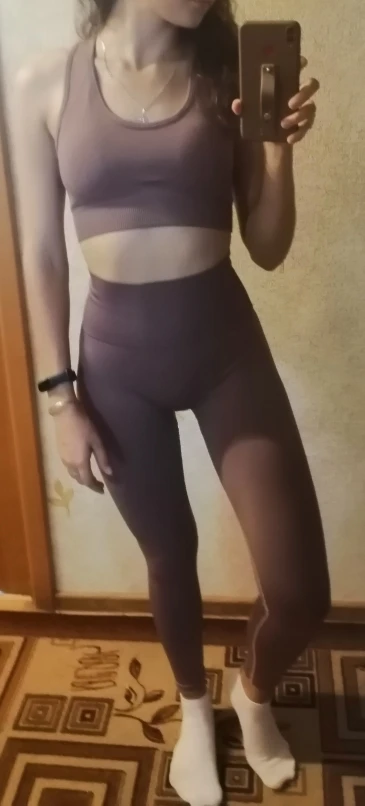 Очень красивый внешний вид. Очень толстая ткань. Важная информация: Бюстгальтер возмещен Леггинсы слегка прозрачные в пятнах