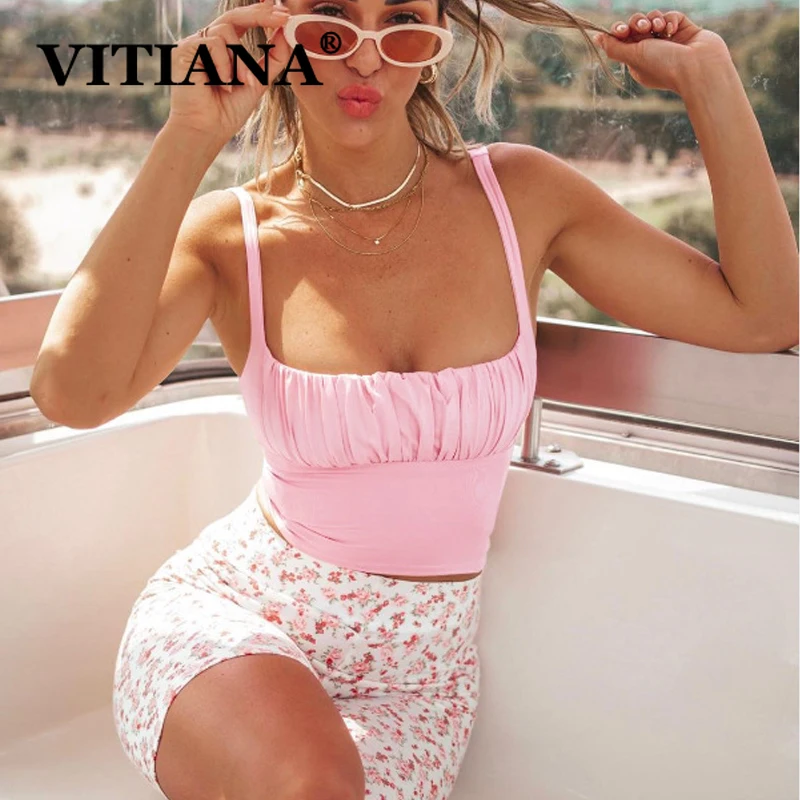 VITIANA женская короткая сексуальная клубная розовая камисоль Лето 2020 женские без рукавов без бретелек Вечерние пляжные женский короткий топ уличная одежда топы