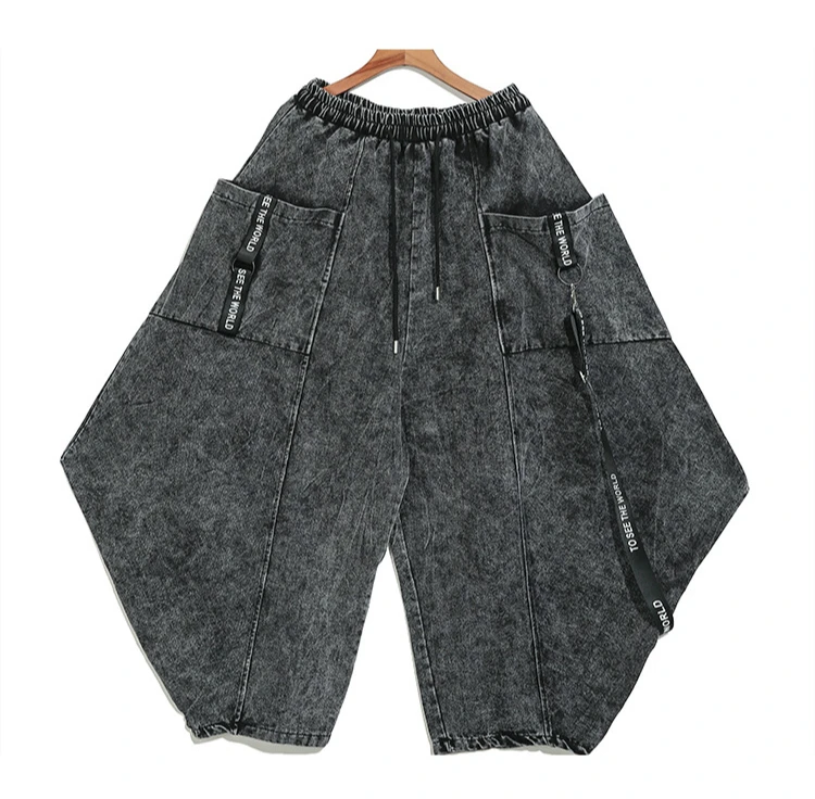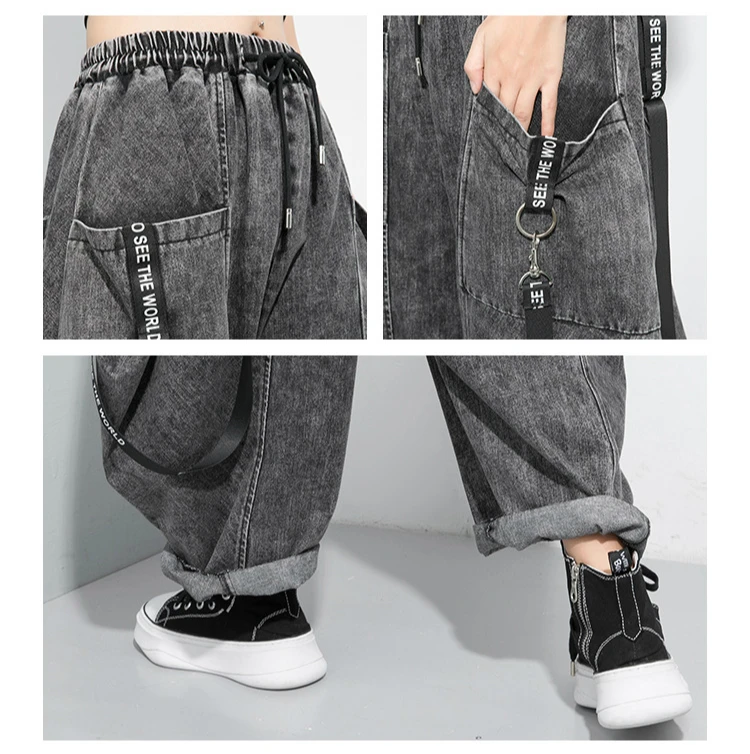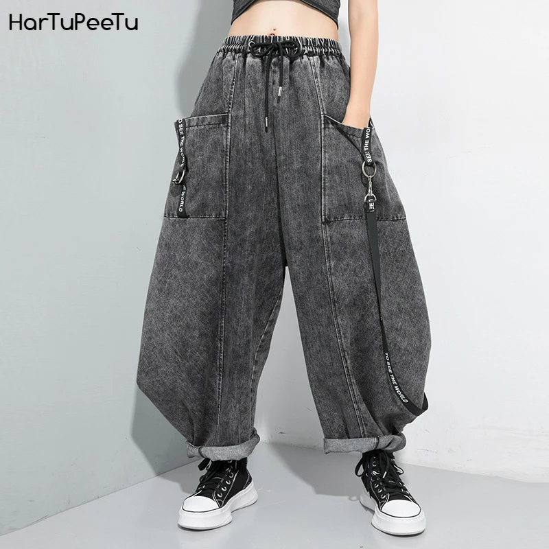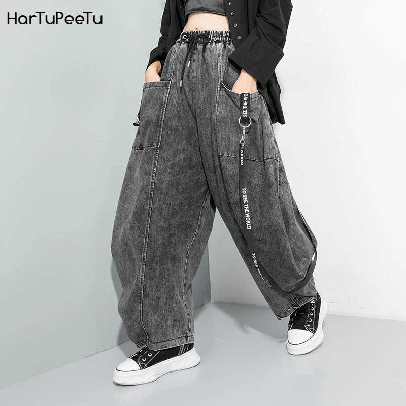 Джинсы женские с широкими штанинами, свободные брюки из денима с лентой, с эластичным поясом, в стиле ретро, большие размеры, весна-осень 2020