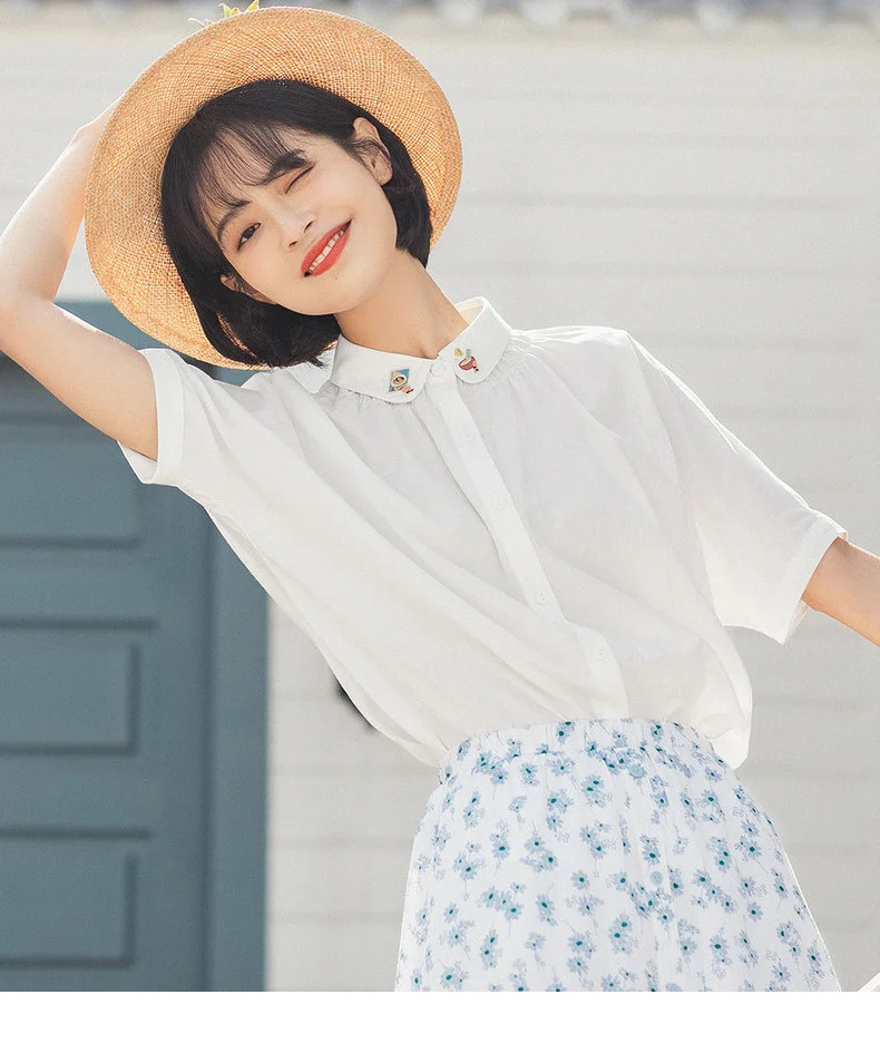 Базовая рубашка из чистого хлопка, с отворотом, летняя, белая или Синяя