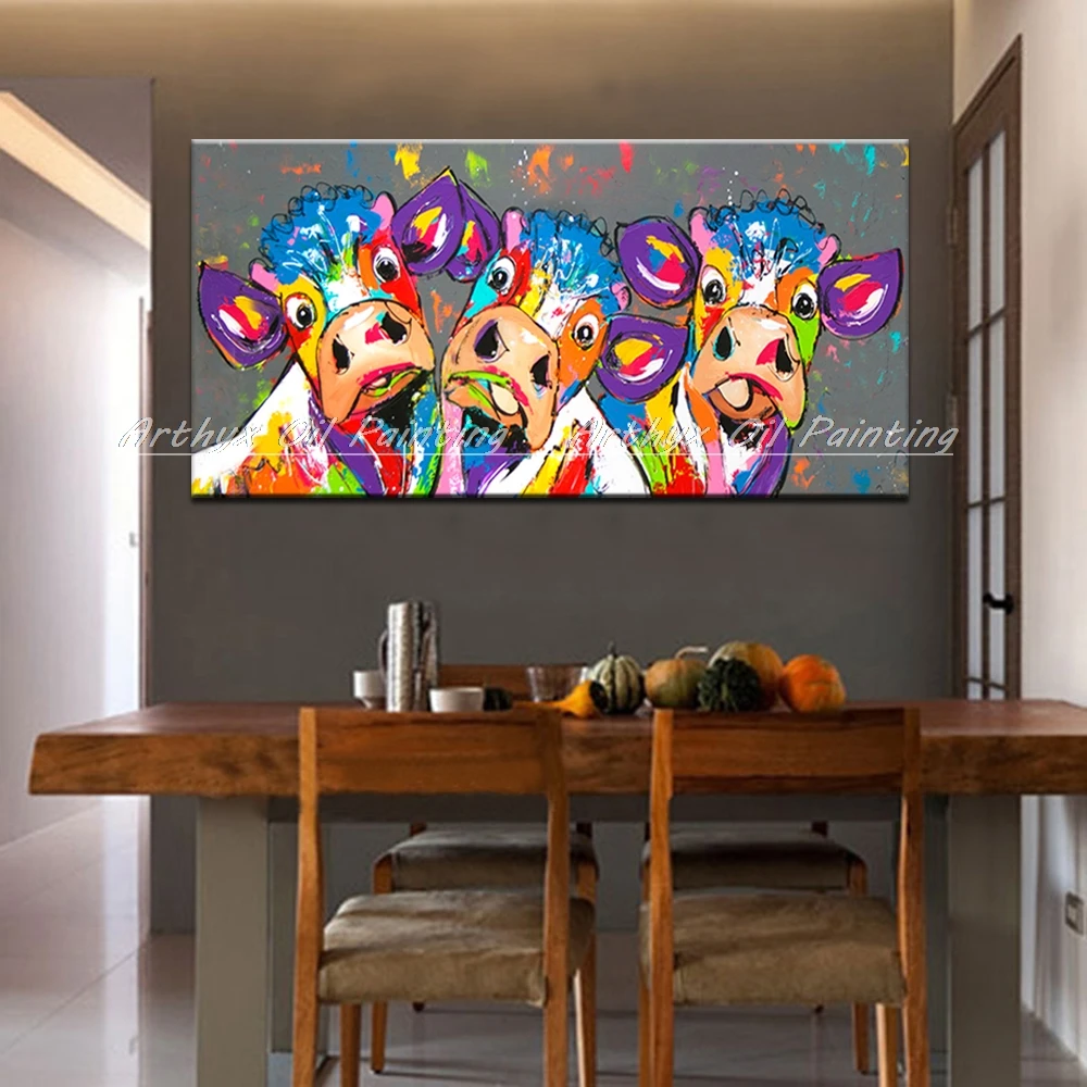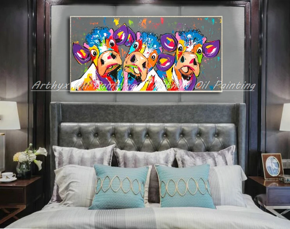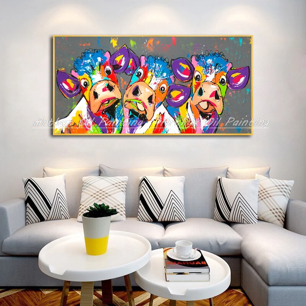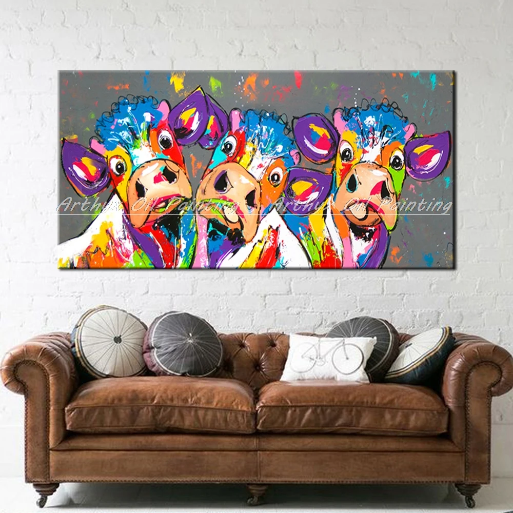 Описание товара:Arthyx большой размер Ручная роспись коровы животные картина маслом на холсте Абстрактная поп-арт-стена картина для гостиной украшение дома.