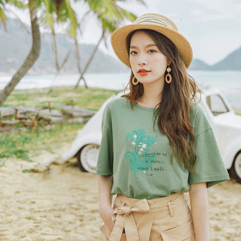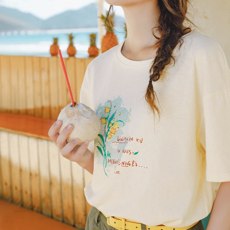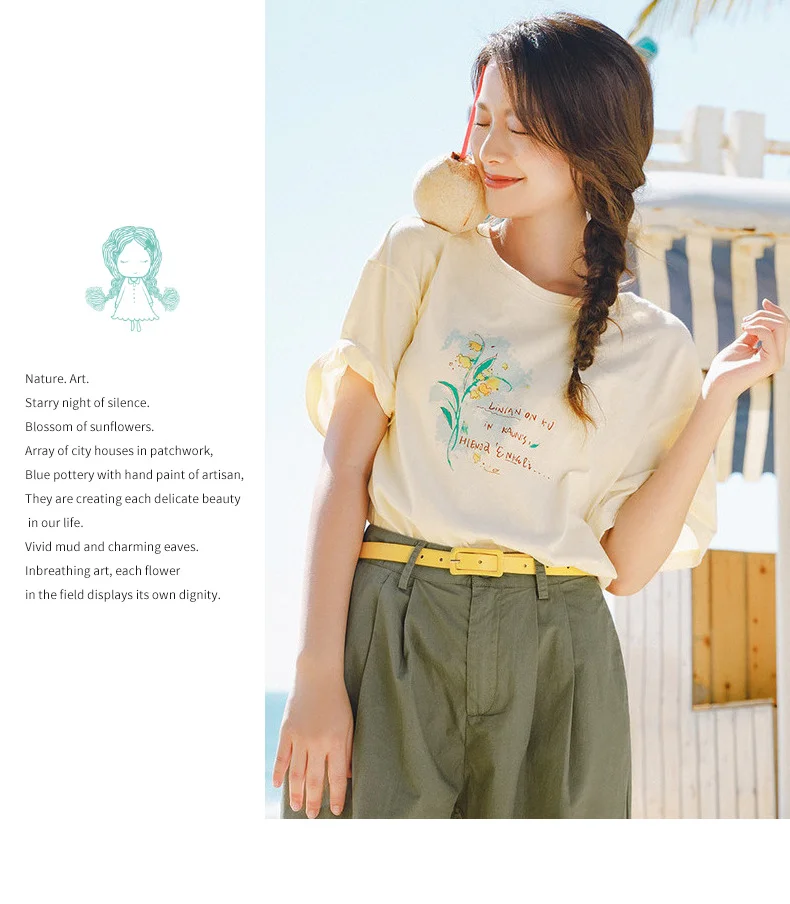 Футболка женская хлопковая с коротким рукавом, с графическим принтом