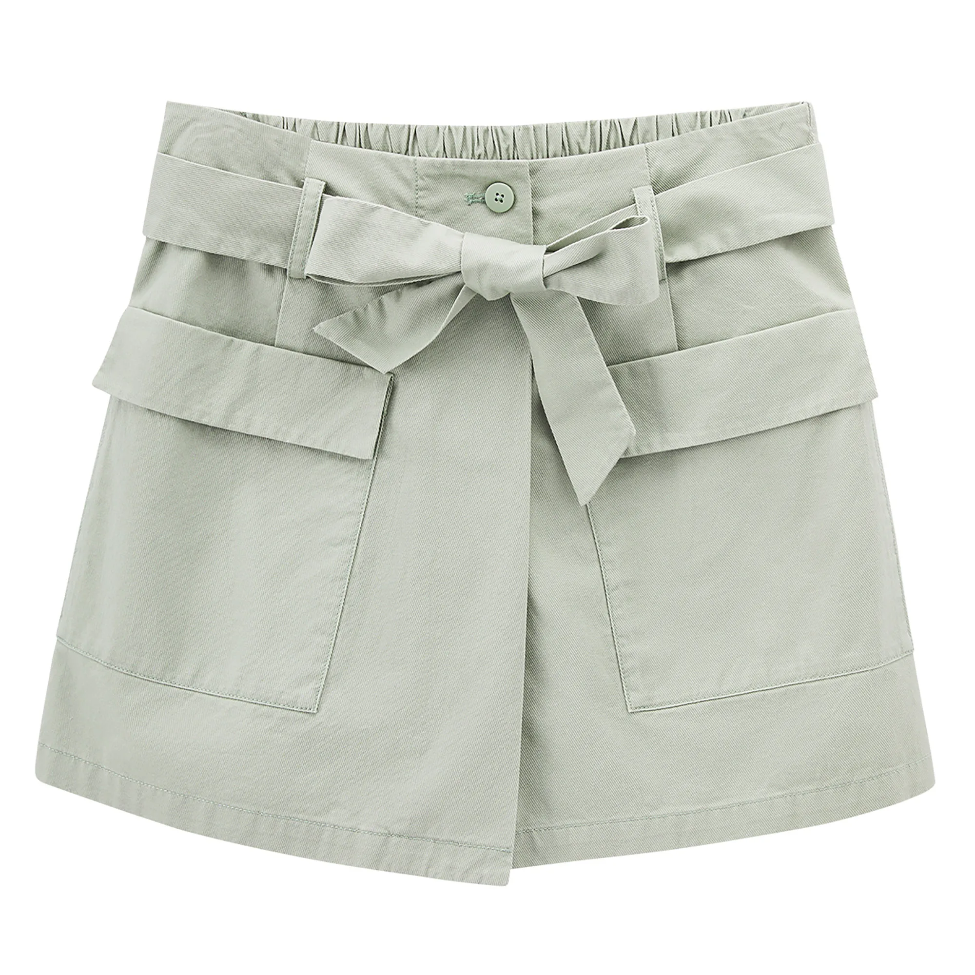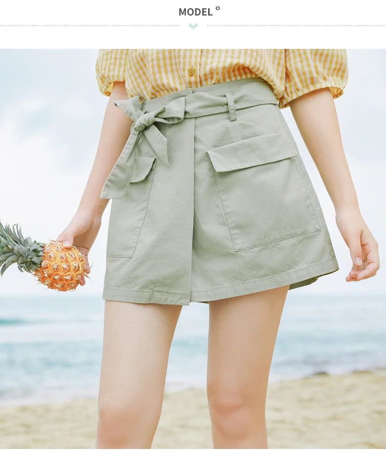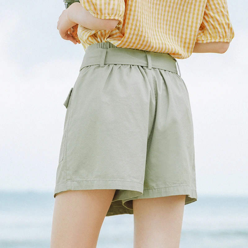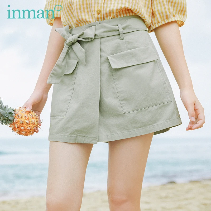 INMAN зеленые короткие брюки-кюлоты с карманами, летние женские шорты из чистого хлопка с завышенной талией и бантом для отдыха