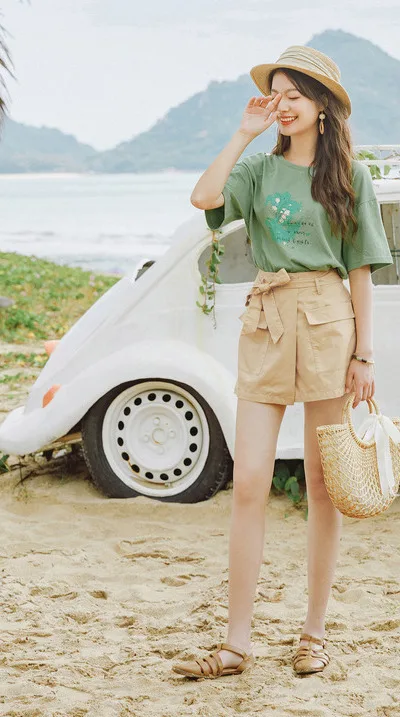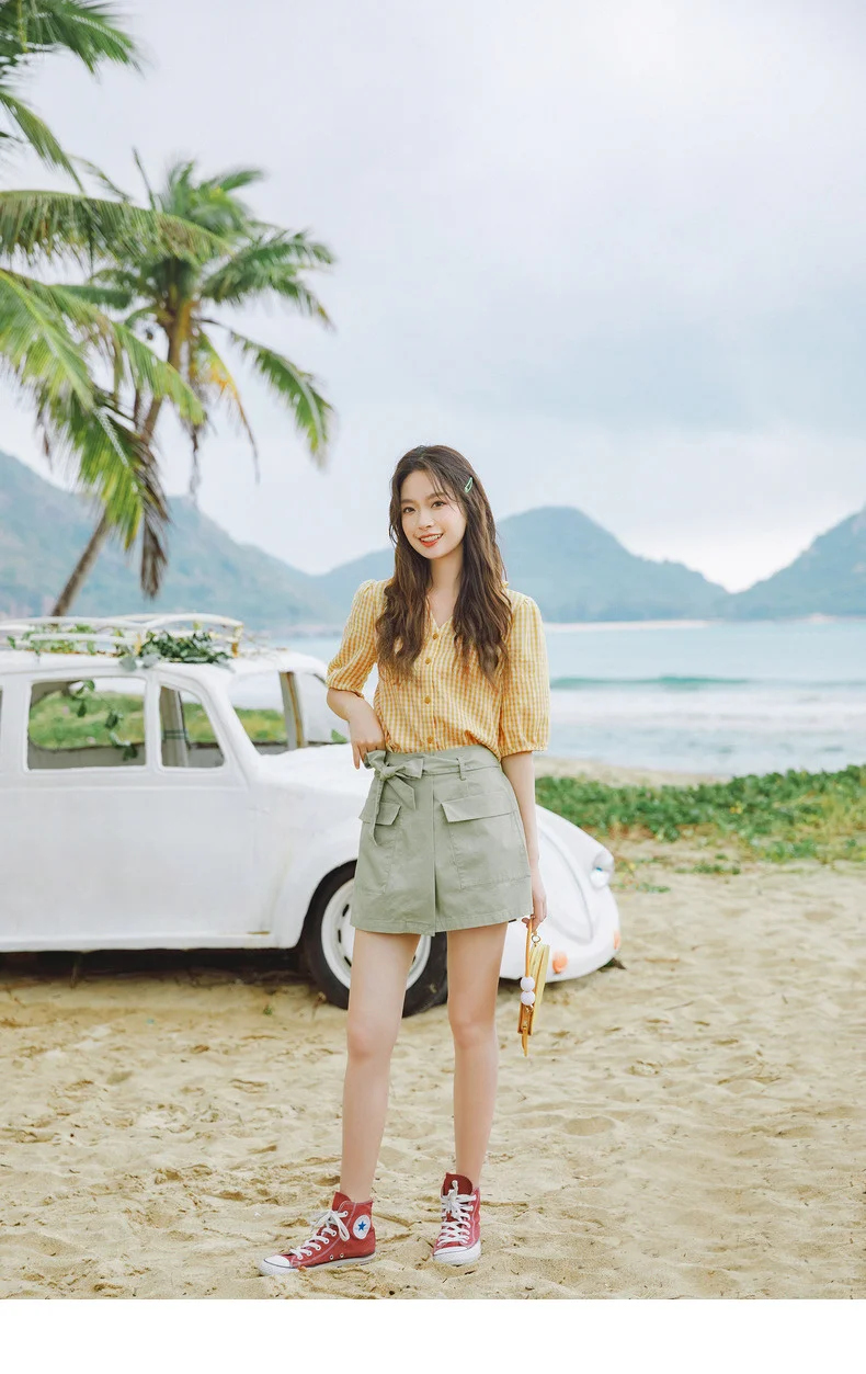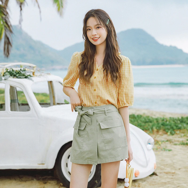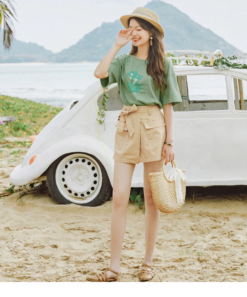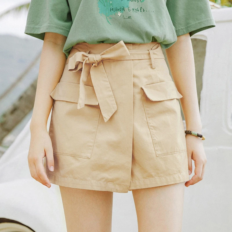 INMAN зеленые короткие брюки-кюлоты с карманами, летние женские шорты из чистого хлопка с завышенной талией и бантом для отдыха