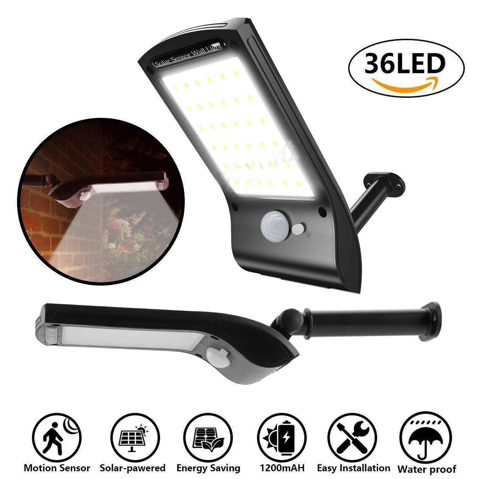 Солнечный светильник можно повернуть на 180 ° для регулировки вверх и вниз. Поверните на любой угол, чтобы удовлетворить ваши разнообразные потребности. Новый дизайн 9 см установленных стентов поможет вам получить лучший солнечный свет, зарядить быстрее и расширить область освещения. Новый 36 Улучшенный светодиодный светильник обеспечивает более широкое освещение. Намного ярче, чем светодиодный светильник других брендов на рынке и срок службы до 90000 часов. Этот наружный солнечный светильник обеспечивает максимальную яркость освещения для обеспечения безопасности и безопасности для вашей собственности Всю ночь. Датчик движения PIR: Эти солнечные огни безопасности зондируют диапазон от 10 до 26 футов (от 3 до 8 метров) с углом обзора 120 градусов. Включение в ночное время при обнаружении датчика движения, длится 30 секунд и автоматически восстанавливается после остановки движения. Не беспокойтесь выключить вручную. Для того, чтобы улучшить, чтобы обеспечить длительный срок службы, в настоящее время существует две отдельные уплотнения между внутренностями и задней панели чехол. Когда идет дождь, вы не боитесь накапливать лишнюю воду. IP65 Водонепроницаемый делает его хорошо работает для большинства видов погоды, таких как шторм, гроза и мороз. Не беспокойтесь о разрушении на улице. Простая установка и гарантия: просто прикрутите его в стене с помощью прилагаемых винтов. Экономит ваше время. Чтобы получить лучшее воздействие солнечных лучей, Используйте расширенный стент.