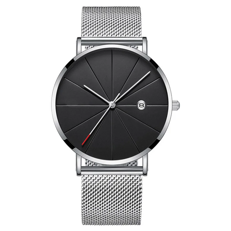 Часы мужские ультратонкие кварцевые с календарем и сетчатым браслет...