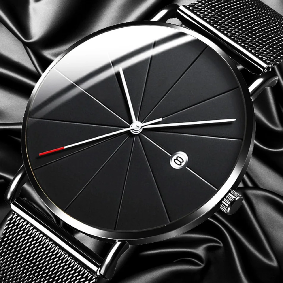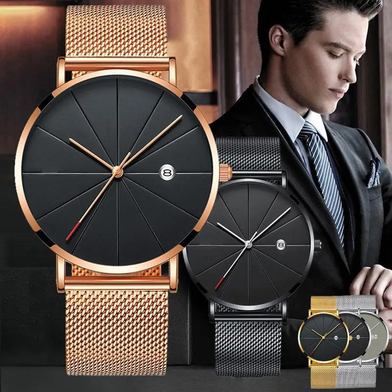 Часы мужские ультратонкие, роскошные модные, со стальным сетчатым р...