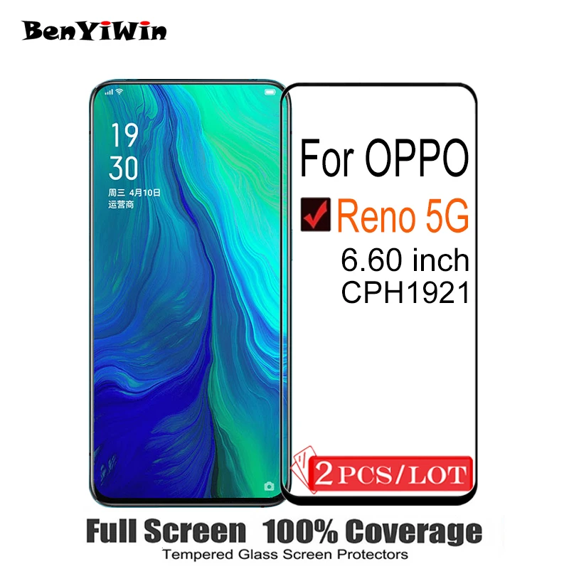 Защитное стекло для OPPO Reno, 100% оригинальное закаленное стекло с полным покрытием, 2 шт., Защитное стекло для OPPO Reno, 6,60 дюйма, Защитная пленка для Reno, 5G, CPH1921