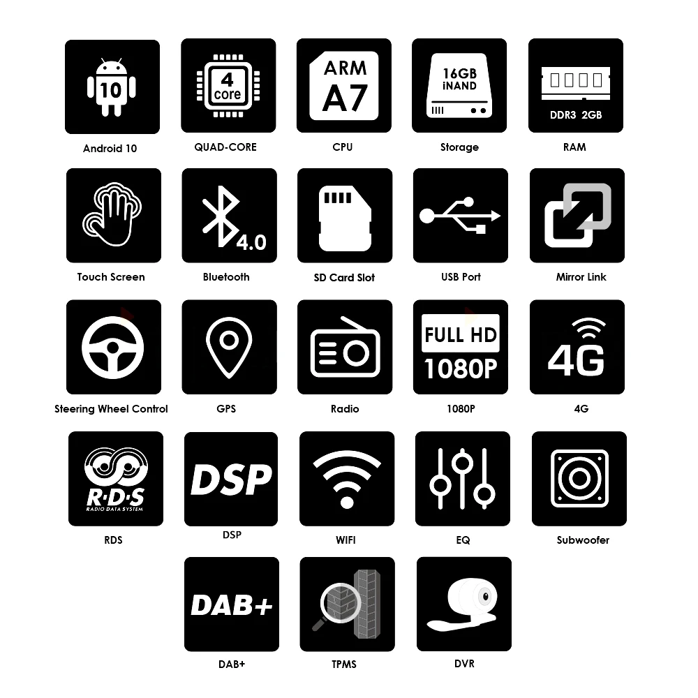 4G WIFI DVR DAB 2din Android 10 четырехъядерный автомобильный DVD-п...