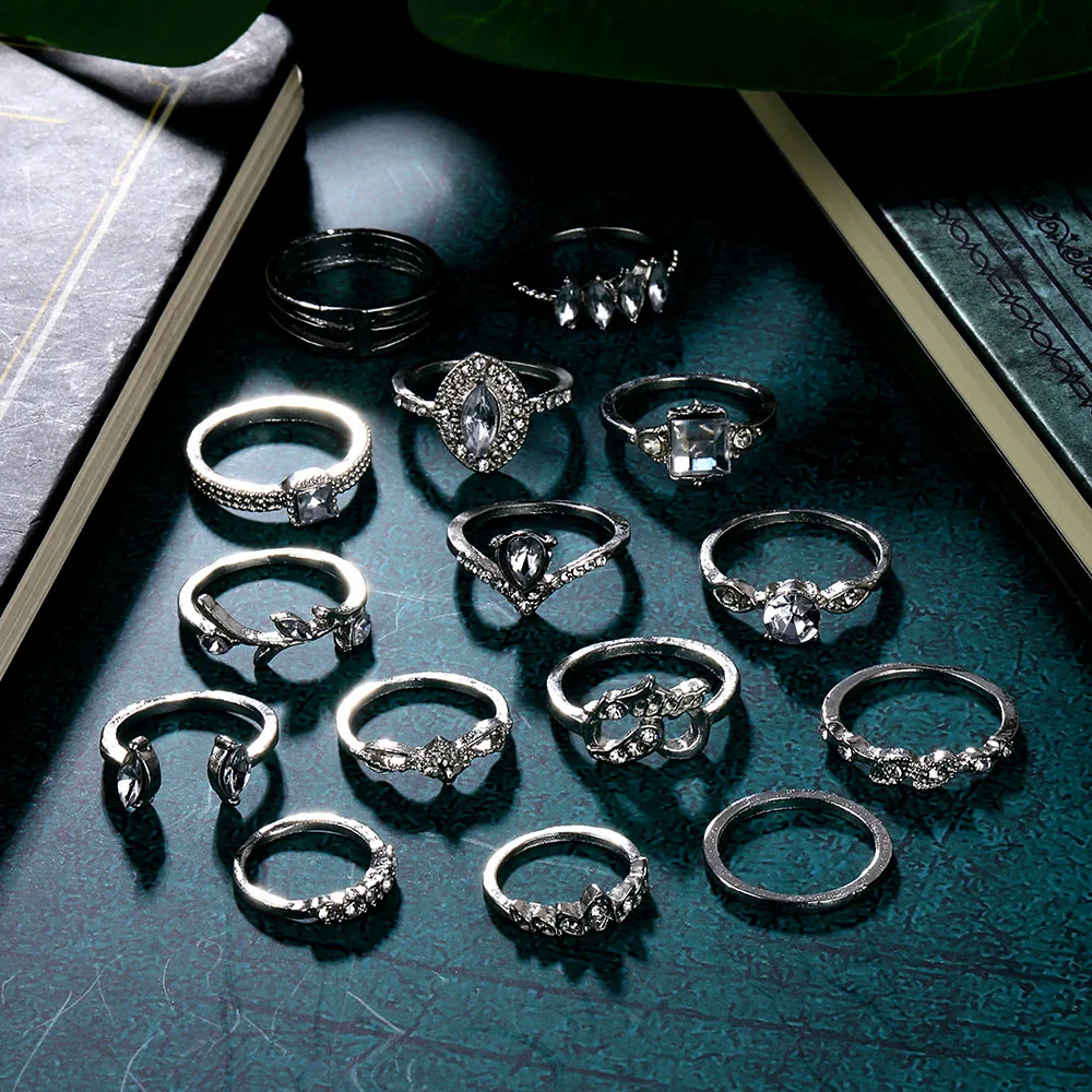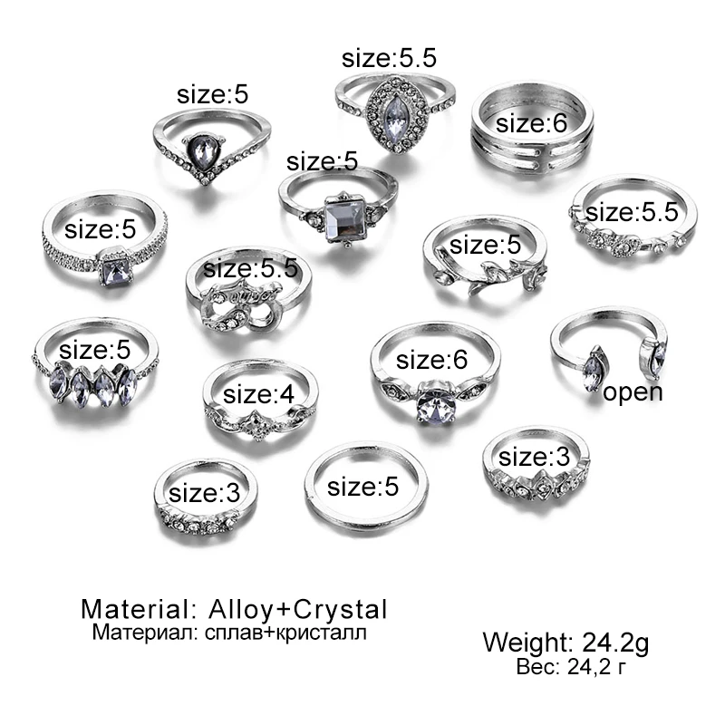 Набор колец для женщин DAXI, 15 шт.компл., с кристаллами, в форме сердца, элегантные кольца серебряного цвета, 2020