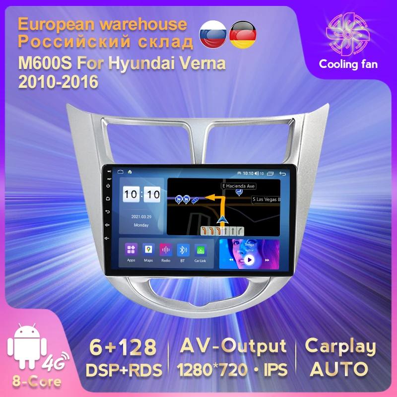Автомагнитола 2DIN, мультимедийный видеоплеер с GPS-навигацией, DSP, IPS, Android 10,0, 6 + 128 ГБ, для Hyundai Solaris 1, Verna, Accent 2010-2016 г.