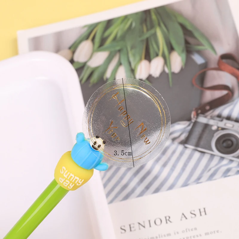 100 шт.лот, милая, с Новым годом, прозрачная, круглая, уплотнительная этикетка, наклейка, бронзовая, уплотнительная этикетка, наклейка, ПВХ, сделай сам, этикетка