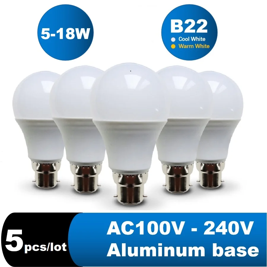 Светодиодная лампа направленного света 5 шт.лот B22, настольная лампа, AC 110 В, 130 В, 220 В, магазиндомашнее освещение 6 Вт, 9 Вт, 12 Вт, 15 Вт, 18 Вт, 21 Вт, Холодныйтеплый белый свет