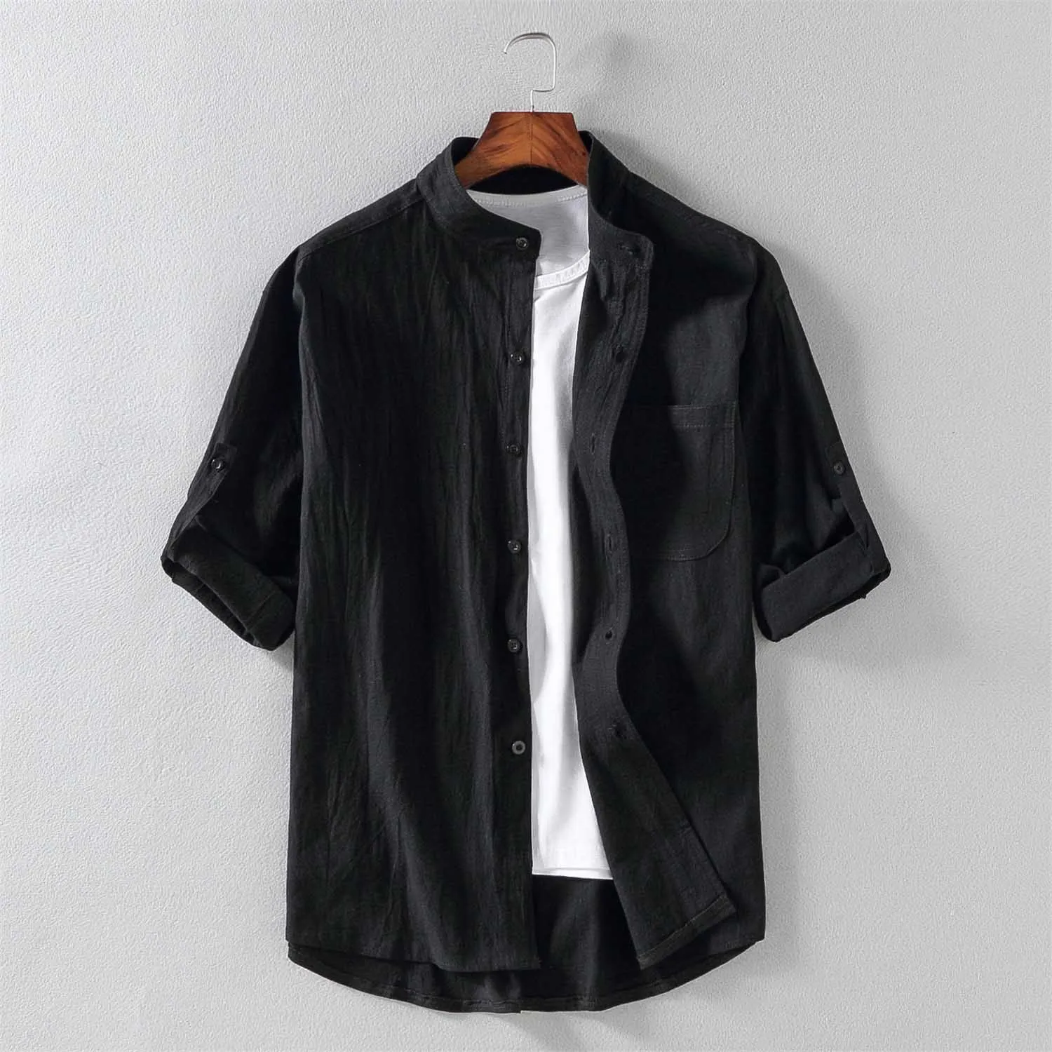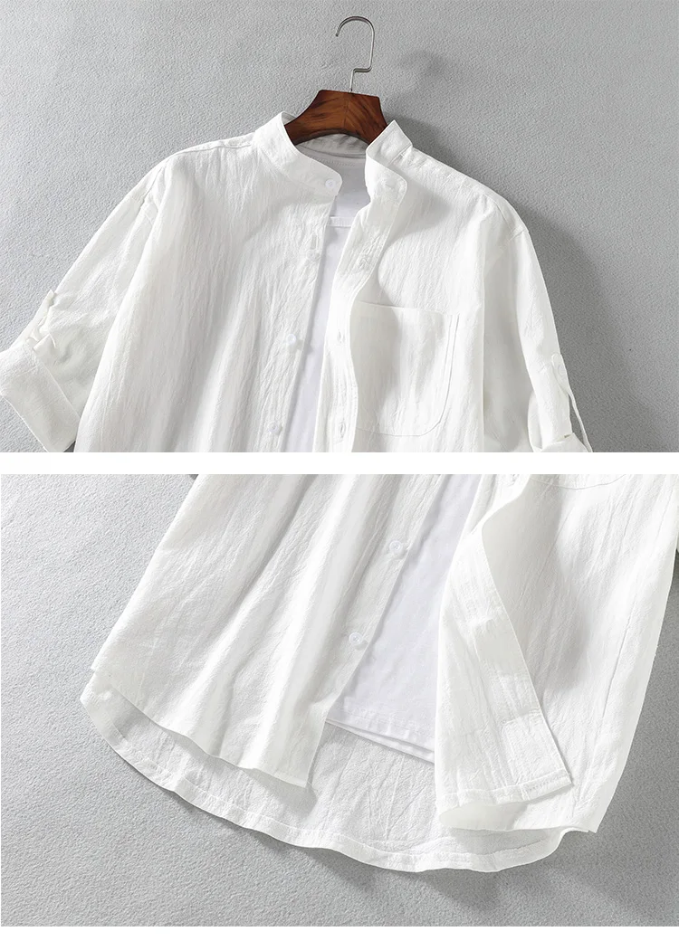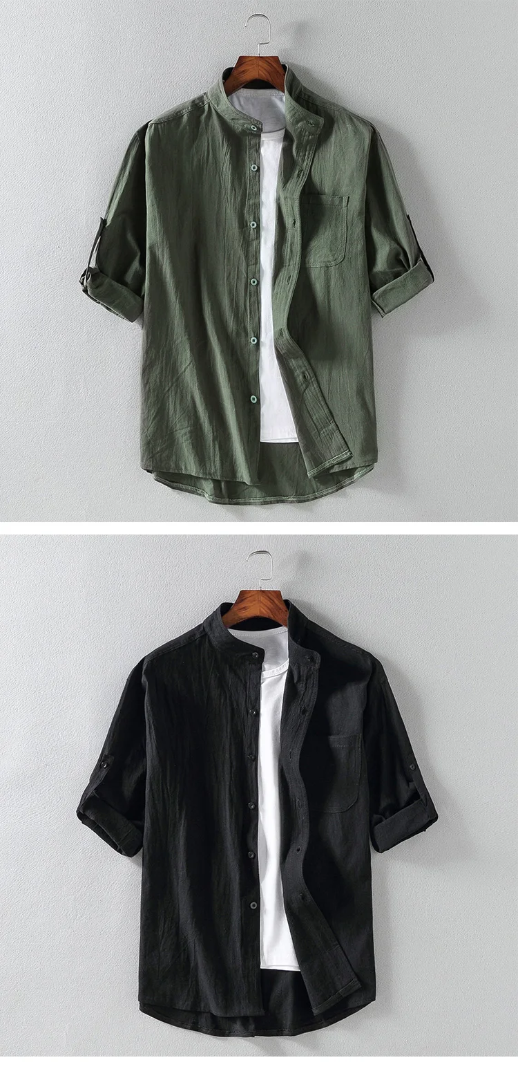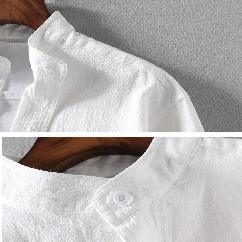 Рубашка мужская с коротким рукавом и воротником-стойкой, свободная ...