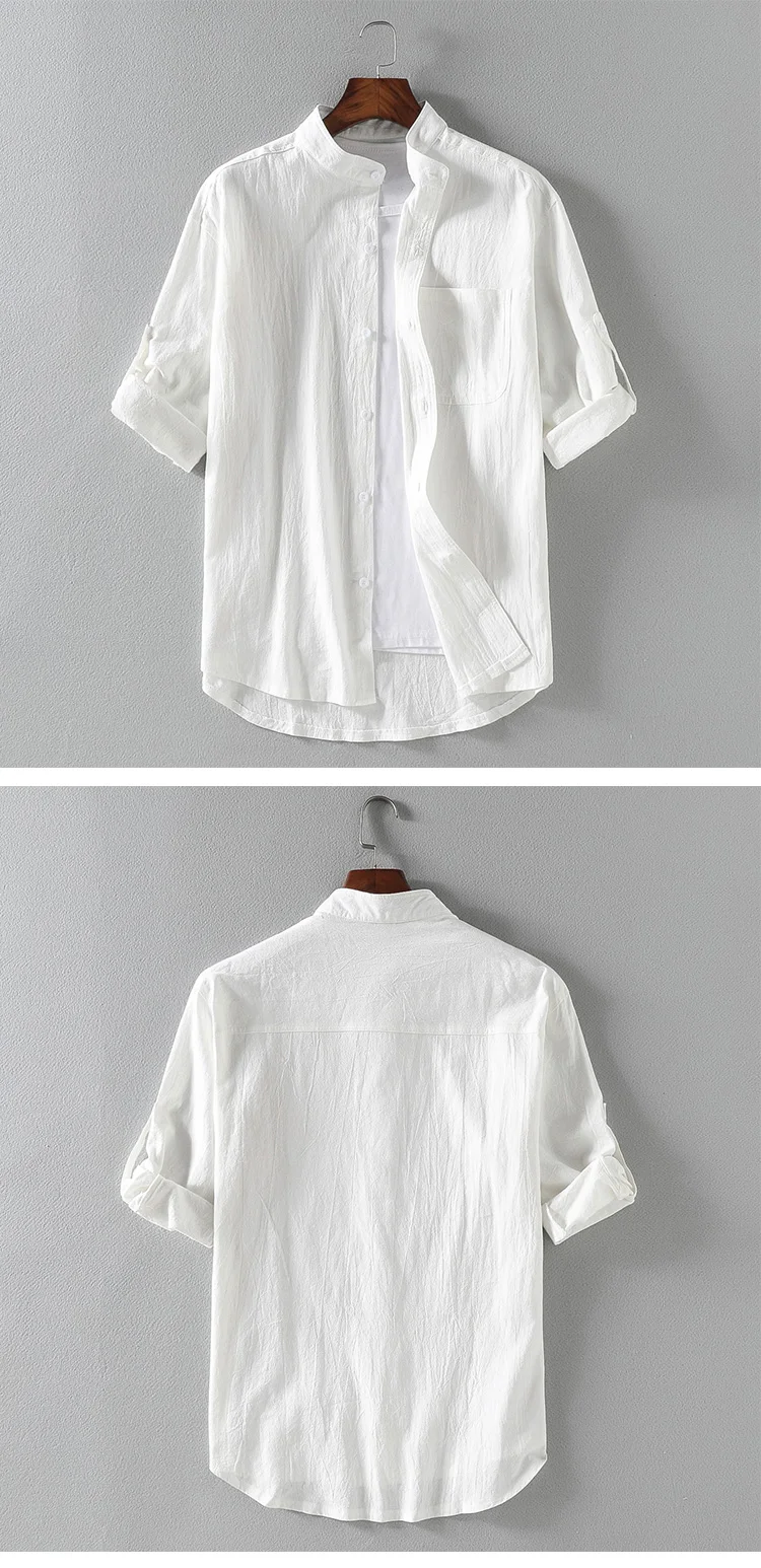 Рубашка мужская с коротким рукавом, однотонная тонкая льняная Повсе...