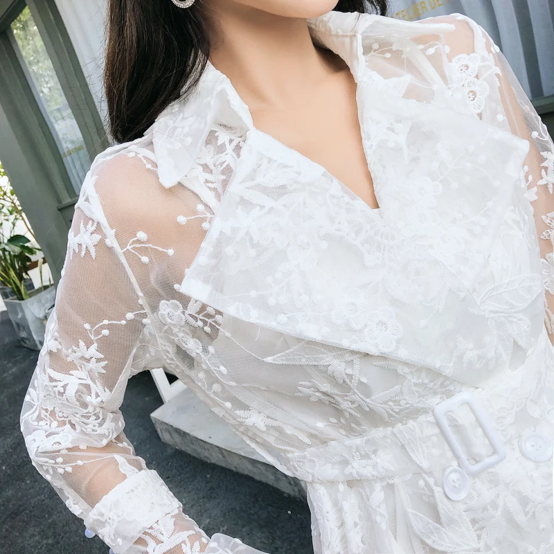 Новинка весны 2019, модное женское кружевное платье, блейзер с воротником, элегантное вечервечерние платье с длинными рукавами, тонкие платья Vestidos