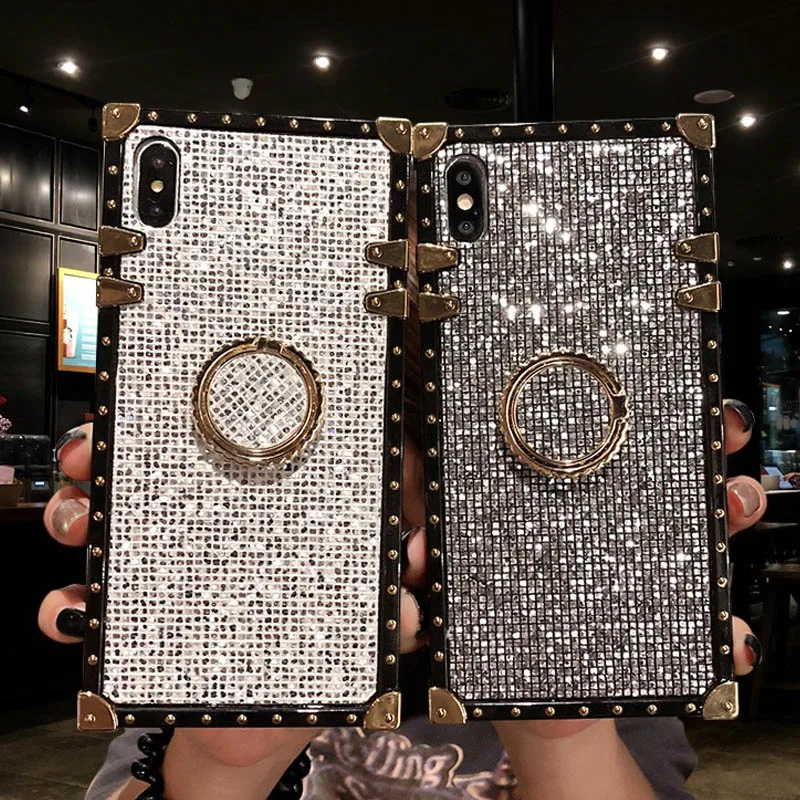 Роскошные блестящие чехлы для телефонов с кольцом-держателем, чехол для iphone 11 PRO MAX 7 Plus 8, мягкий силиконовый Квадратный чехол для iphone XS MAX X XR 6S