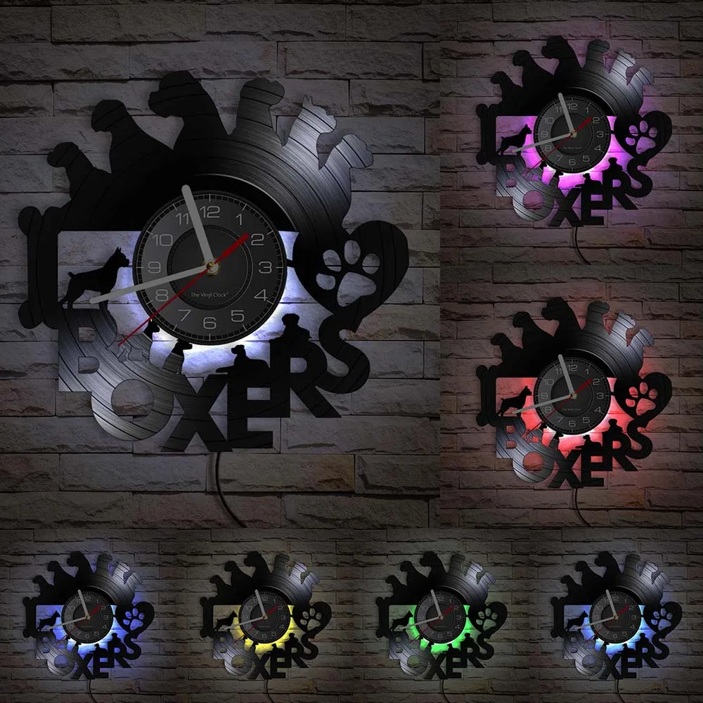 Настенные часы-боксеры с лазерной гравировкой, винтажные художественные украшения на стену с изображением коробок и собак, щенков и пород