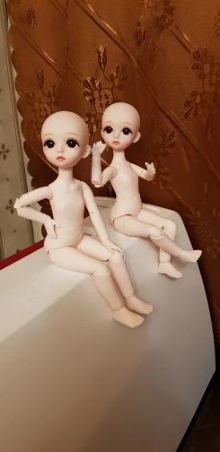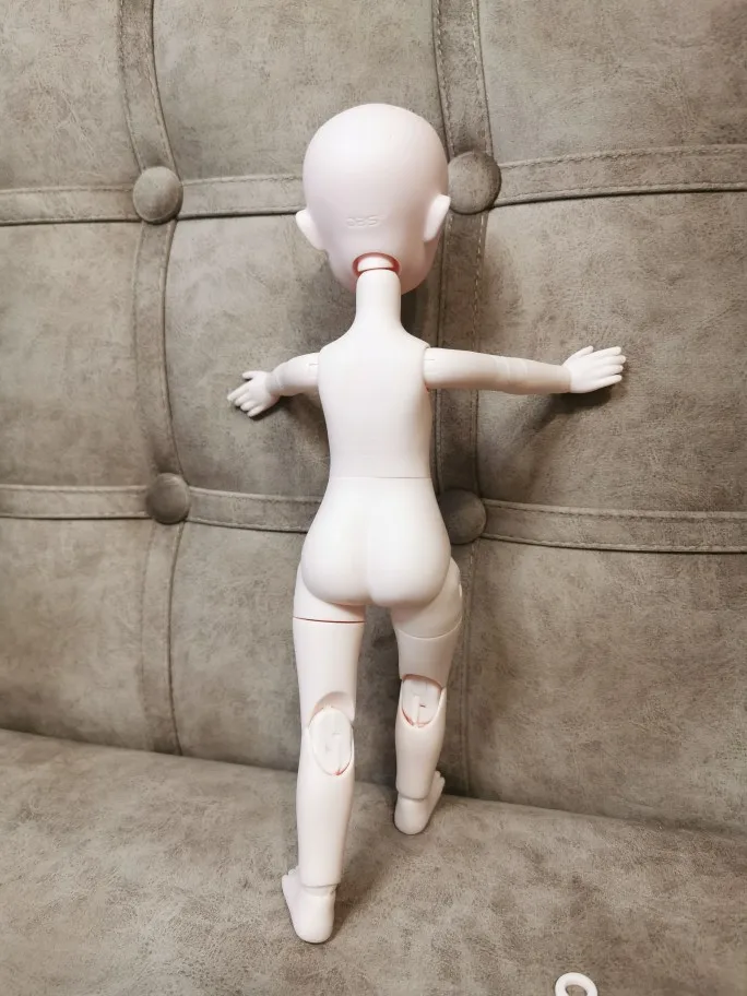 Второй раз заказываю эту куколку. В ней все гармонично. Приятные черты лица, пропорциональное тело. Суставы просто отличные. Принимает разные позы, стоит устойчиво. Цвет всей куколки однородный, чуть светлее телесного. На голове клеймо компании "DBS". На спине - " DBS ", "Made in China", "2019". Для парика подходит силиконовая шапочка 16-17. Ступня 3,7х1,7. Из этой модели можно создать как девочку, так и мальчика. Огромное спасибо создателю этих куколок и магазину.