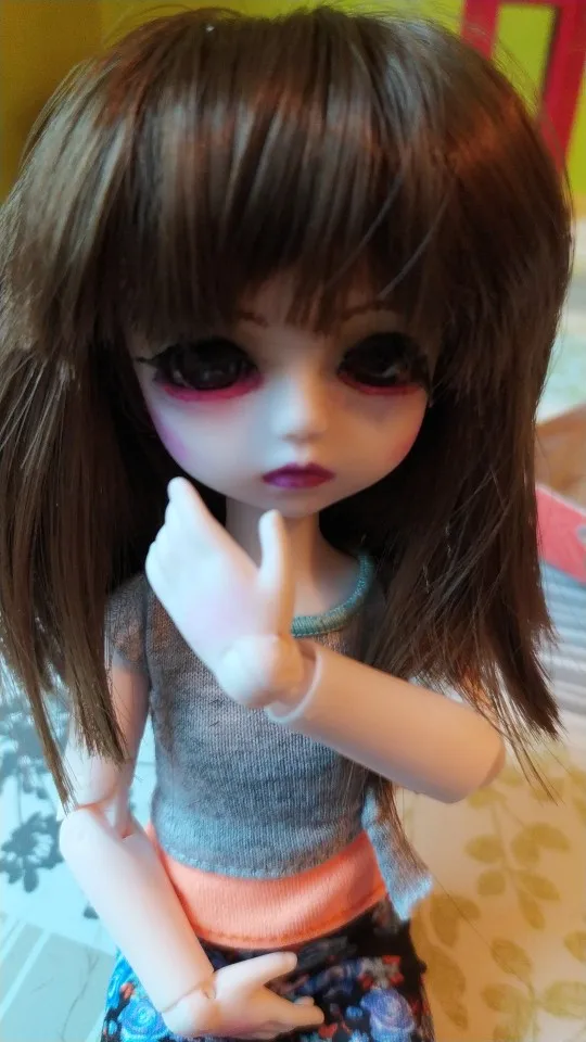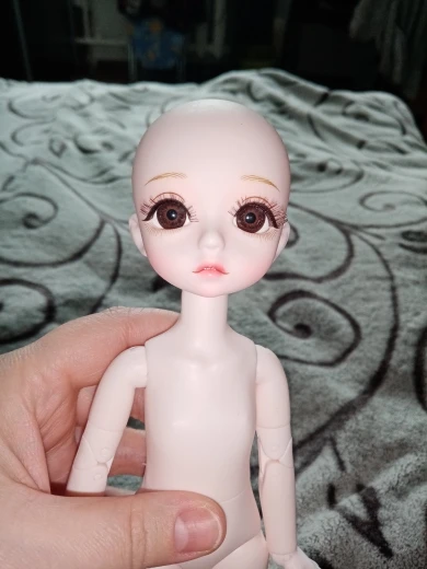 Мне очень нравится эта кукла! Один совет, который я могу сказать: дайте варианты цвета глаз и цвета кожи. Как вы разместили его в описании. Очень хорошо сгибается! Хорошее качество! Я заказал куклу с макияжем. У меня был запасной парик, поэтому я использовал его для этой куклы. Она выглядит идеально.