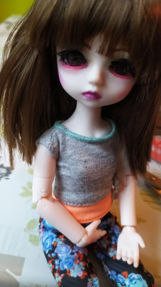 А-а-а-а!!! Прелесть какая!!! Зашибись!!! Аккуратная до предела, все шарниры хорошо двигаются, не болтаются, личико хорошенькое, пластик приятный на ощуп: не жёсткий и не резиновый, запаха нет, цвет приятный, чистый без помарок, головка хорошо садится на шею, не болтается, стоит и сидит без поддержки в разных позах. Куколка не маленькая, 28 см высотой, все параметры деталей хорошо расчитаны, идеальны. Покупайте в этом магазине, не бойтесь. Мой продавец Junwei Wu постарался продать мне о-о-чень шикарно сделанных куколок . Junwei Wu, спасибо тебе!!! Жаль, что глазки только чёрные, а я не попросила голубые. СПАСИБО за хороших куколок. Good! Good! Super! Great! Beautiful!