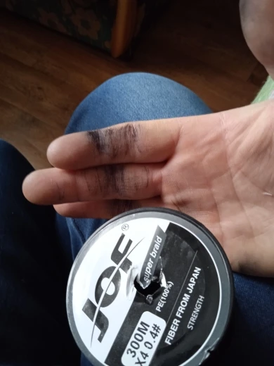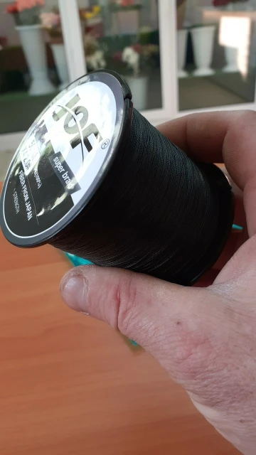 Плетёнка прочная, но немного ребристая, посмотрим как поведет себя на воде позже. Намотал на катушку, немного красит руки.