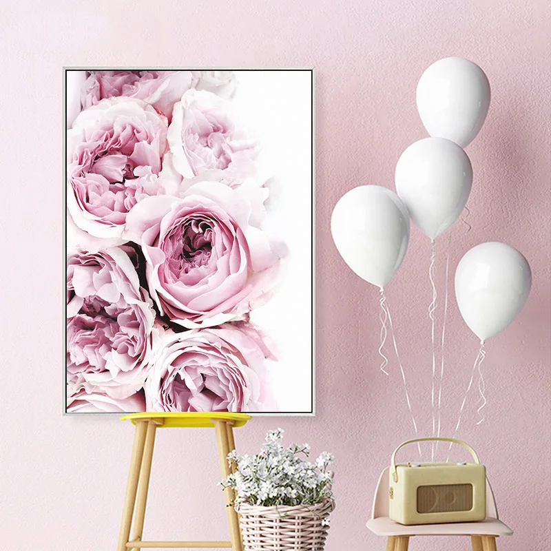 Плакаты и принты в скандинавском стиле, настенные художественные картины с розовыми цветами для гостиной, Картина на холсте с перьями, украшение для дома