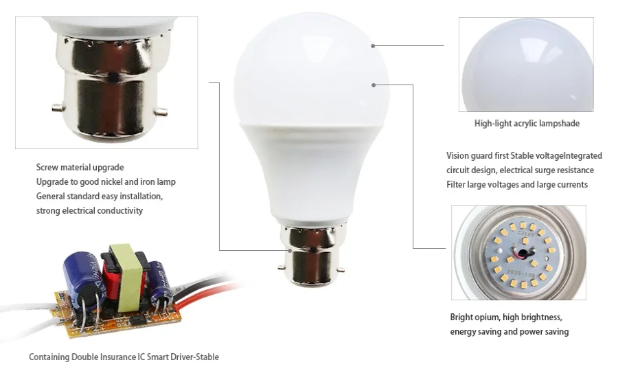 Описание продукта:Эта Алюминиевая СВЕТОДИОДНАЯ лампа хорошо подходит для замены лампы для освещения dow, таких как чтение, гостиная/спальня для дома и т. Д. Мы предлагаем холодный белый и теплый белый.Название товара: светодиодная лампочка, светодиодная лампаМощность: 5 Вт 7 Вт 9 Вт 12 Вт 15 Вт 18 ВтНапряжение: 100-240 В переменного тока, подходит для разных стран напряжения (100 В переменного тока, 110 В, 130 в, 210 в, 220 В, 230 В или 240 В)Разъем: B22Модель светодиодного чипа: SMD2835Гарантия: 1 годИндекс цветопередачи: Ra80Цветовая температура: холодный белый 6000-6500K, теплый белый 2700-3200KКол-во: 10 шт./лот Уважаемые покупатели, пожалуйста, обратите внимание:Потому что цена очень низкая, поэтому Светодиодная лампа не поставляется в розничной коробке, если вы хотите розничную коробку, пожалуйста, обратитесь к нам за помощью, прежде чем оформить заказ.