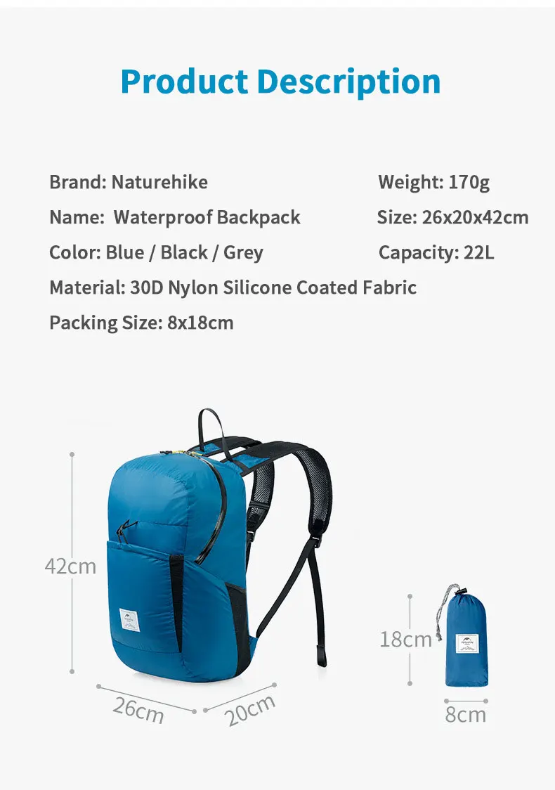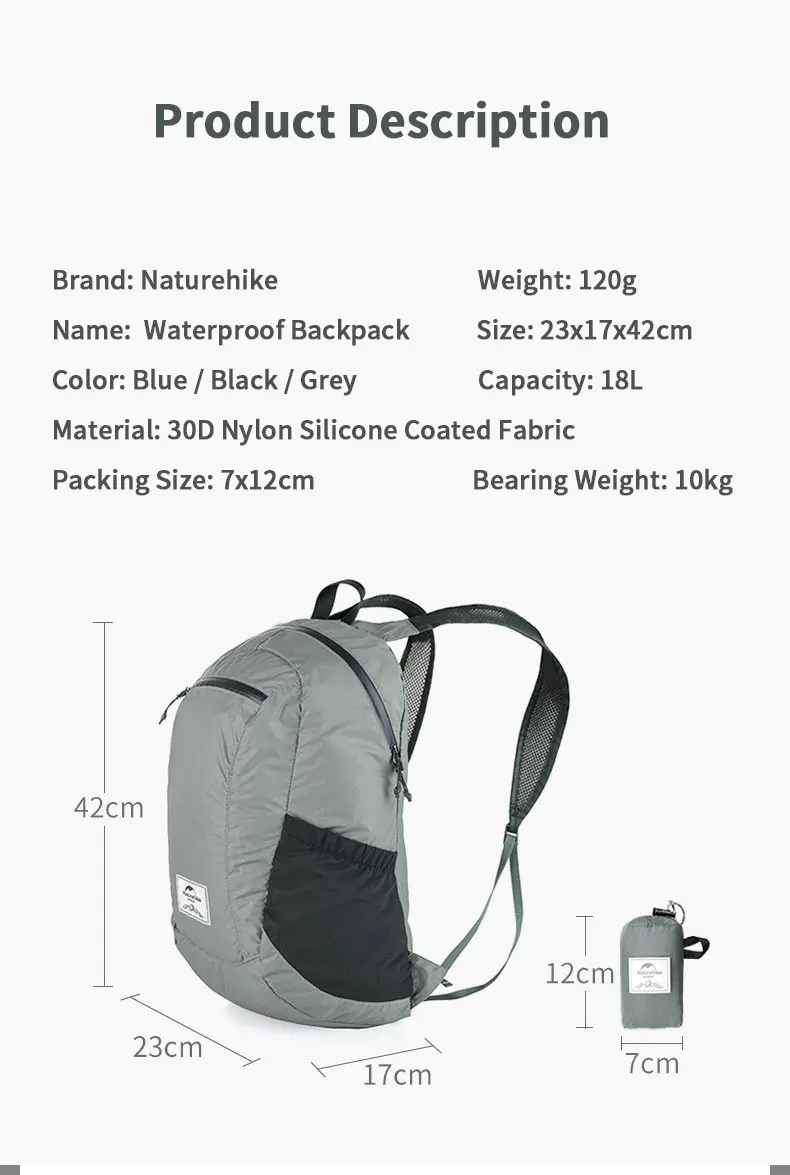 Рюкзак NatureHike 18L, легкий водонепроницаемый складной рюкзак уни...