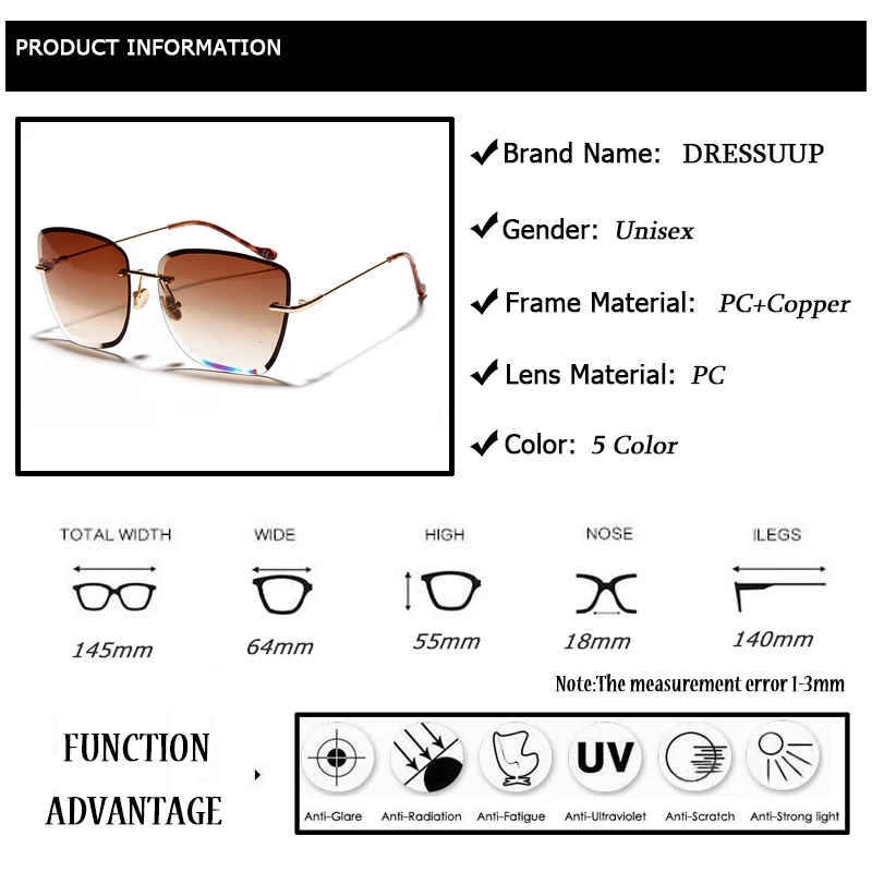 Женские солнцезащитные очки без оправы, в стиле ретро