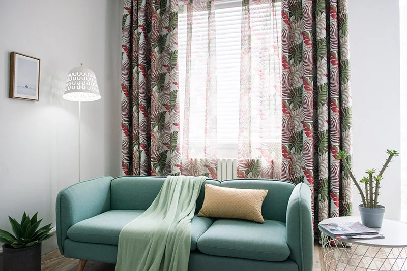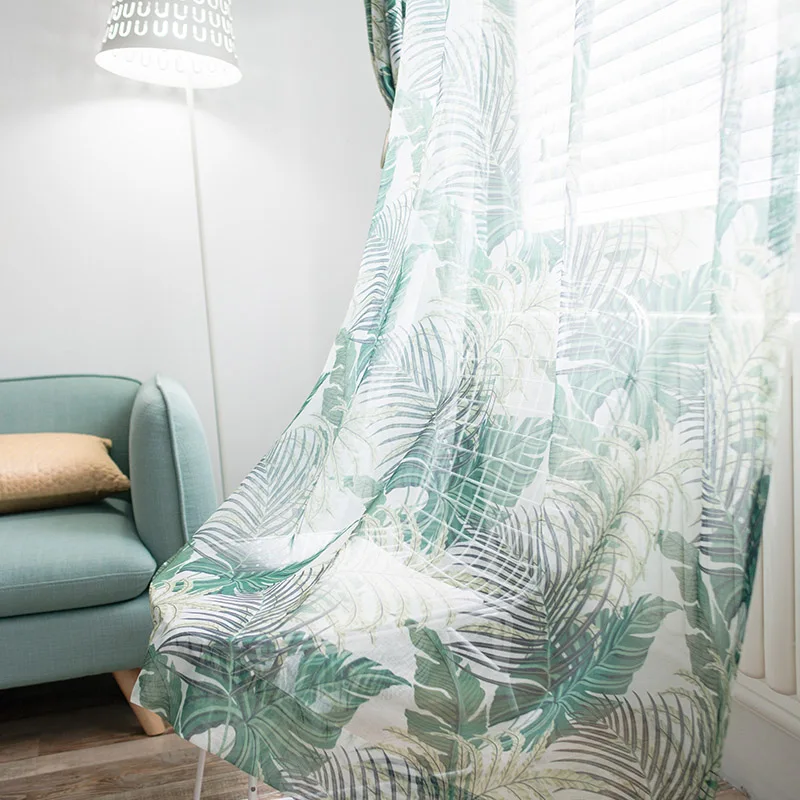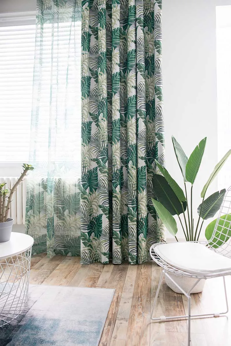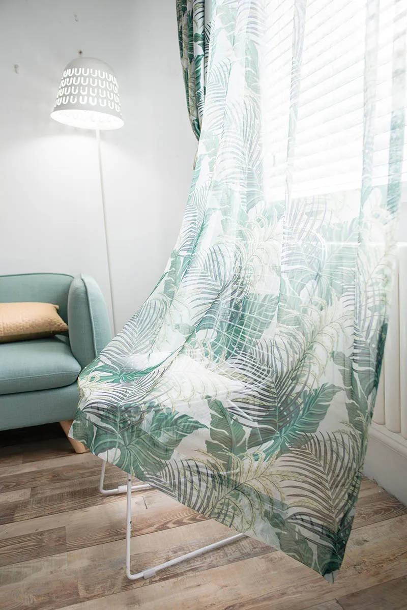 Затемняющие шторы с тропическим принтом для гостиной, зеленые листья, пальма, тюль, вуаль, лайнер, шторы на окна для спальни