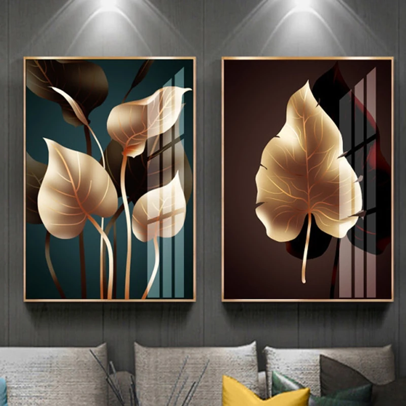 Абстрактный Золотой Листья растений картина постер на стену совреме...